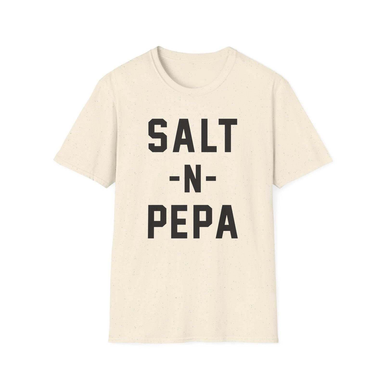 The Salt-n-pepa unisex soft-style t-shirt puts a new spin on casual comfort. Made from very soft materials, this tee is 100% cotton for solid colors. Heather colors and sports grey include polyester. The shoulders have twill tape for improved durability. There are no side seams. The collar is made with ribbed knitting to prevent curling damage.