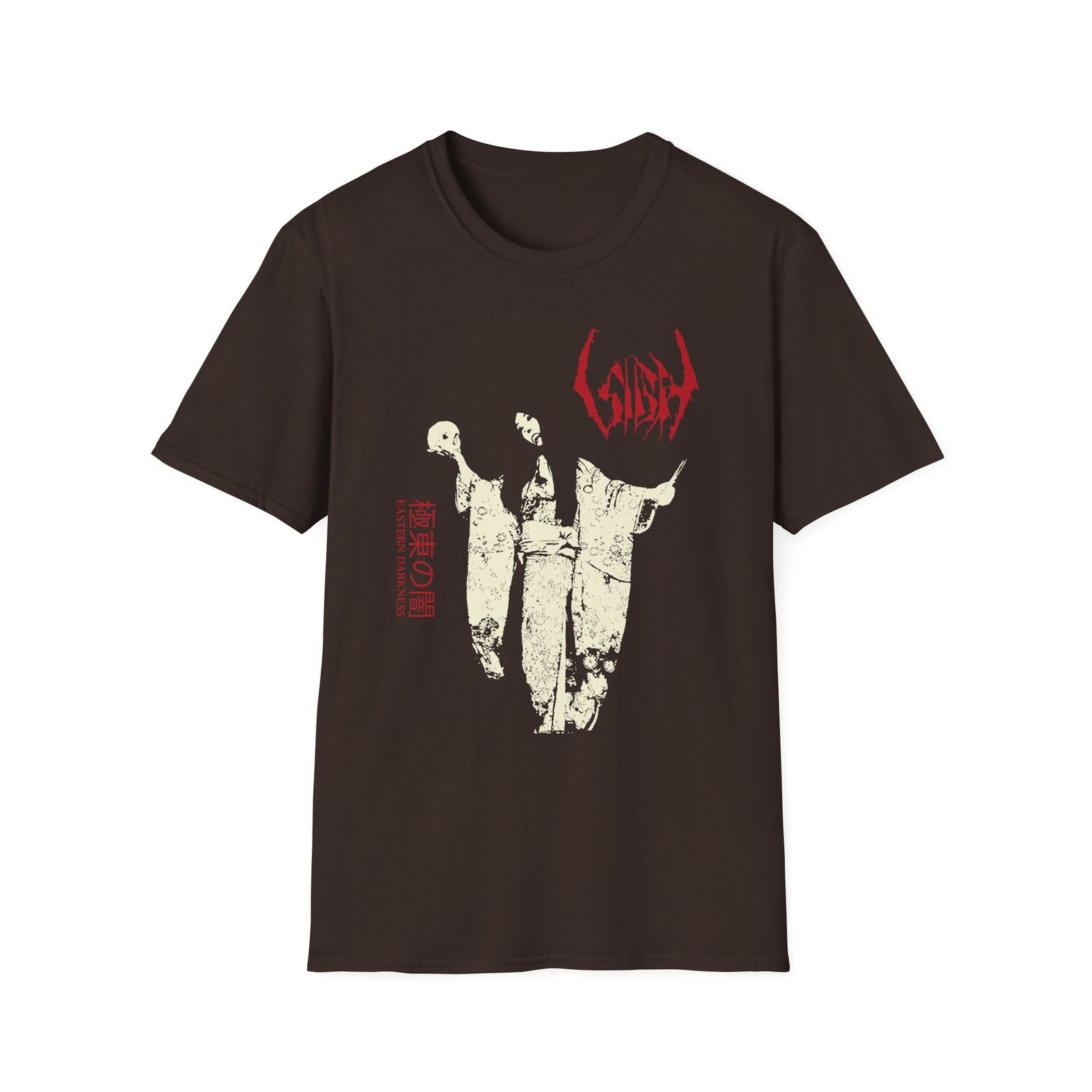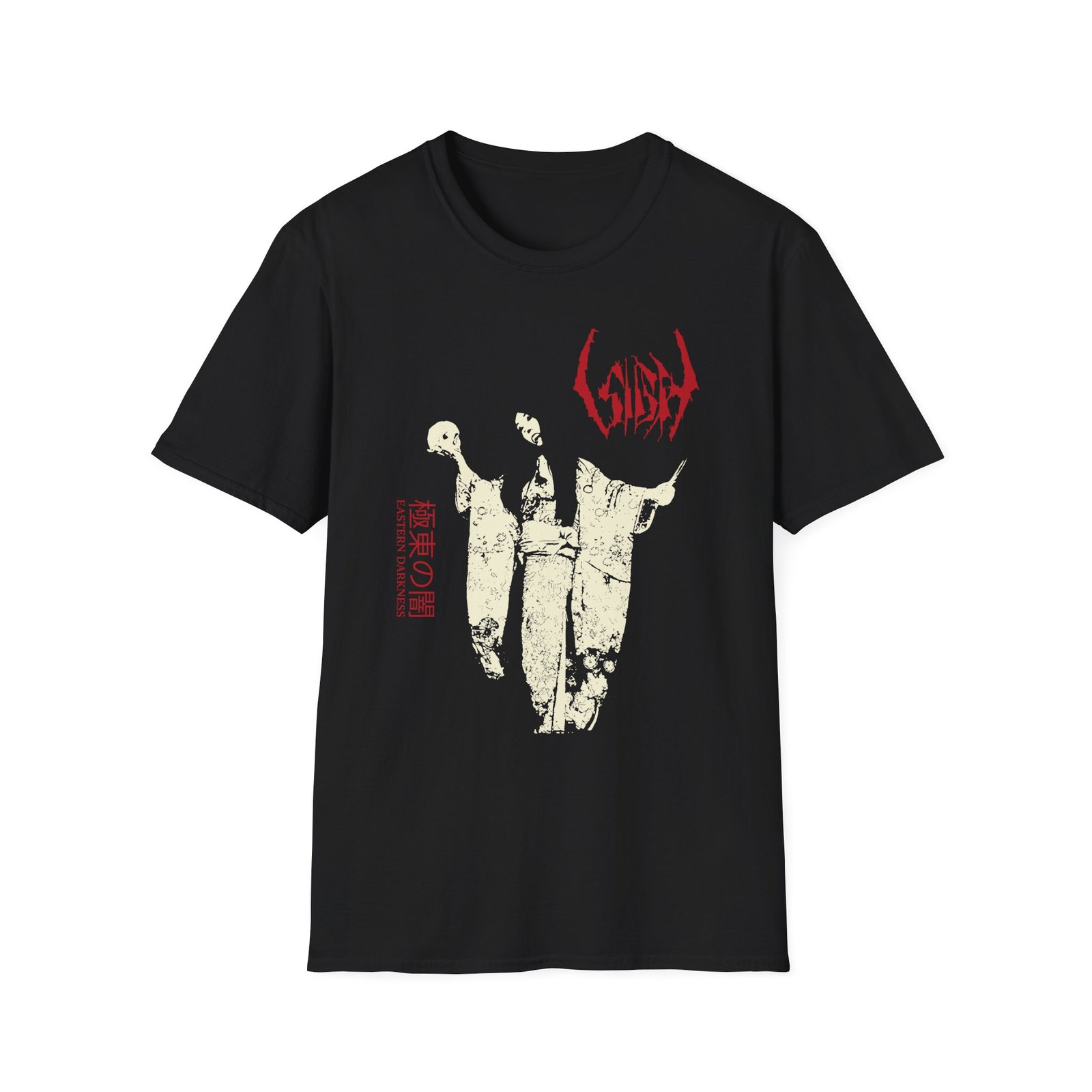 The Sigh Eastern Darkness unisex soft-style t-shirt puts a new spin on casual comfort. Made from very soft materials, this tee is 100% cotton for solid colors. Heather colors and sports grey include polyester. The shoulders have twill tape for improved durability. There are no side seams. The collar is made with ribbed knitting to prevent curling damage.