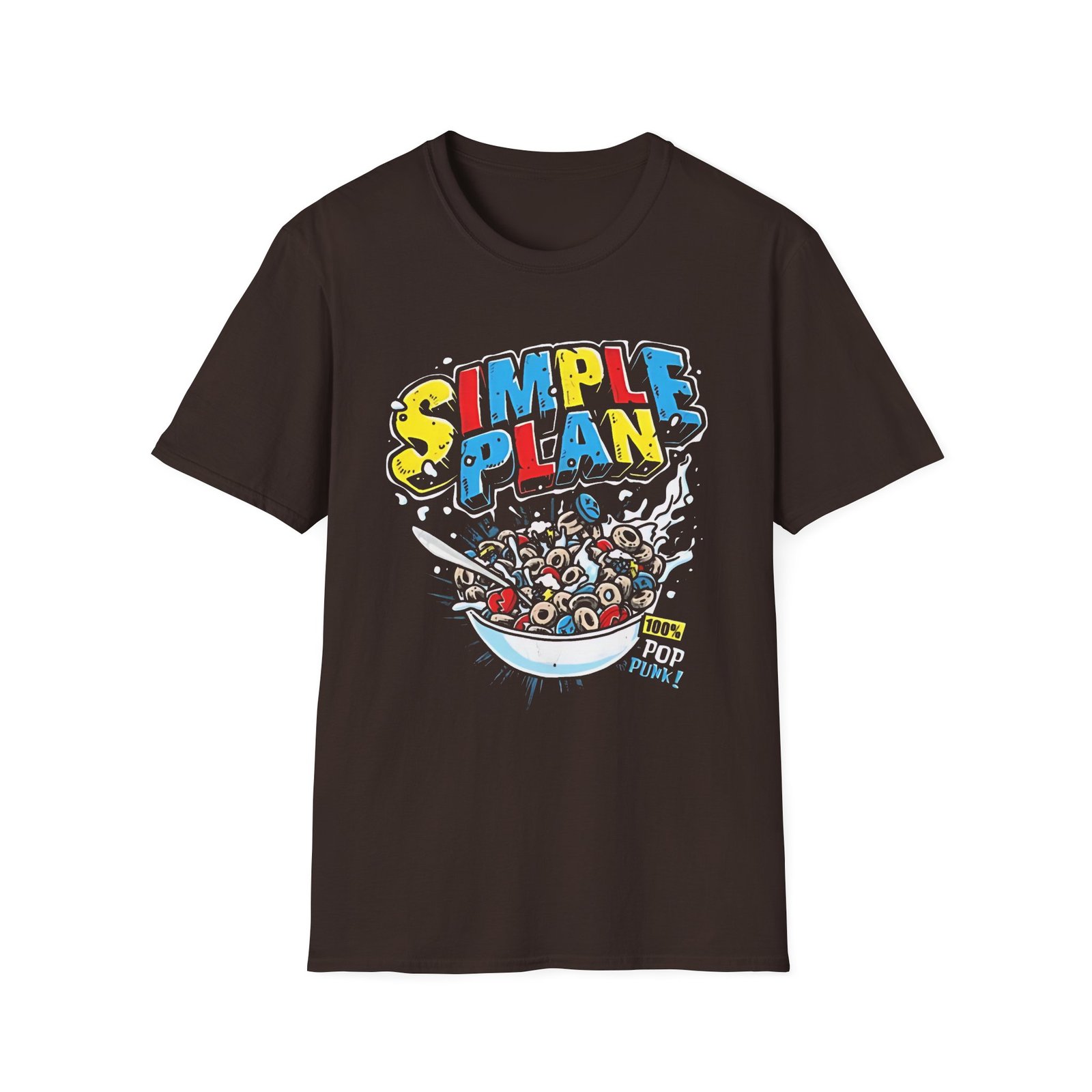 The Simple Plan Cereal unisex soft-style t-shirt puts a new spin on casual comfort. Made from very soft materials, this tee is 100% cotton for solid colors. Heather colors and sports grey include polyester. The shoulders have twill tape for improved durability. There are no side seams. The collar is made with ribbed knitting to prevent curling damage.