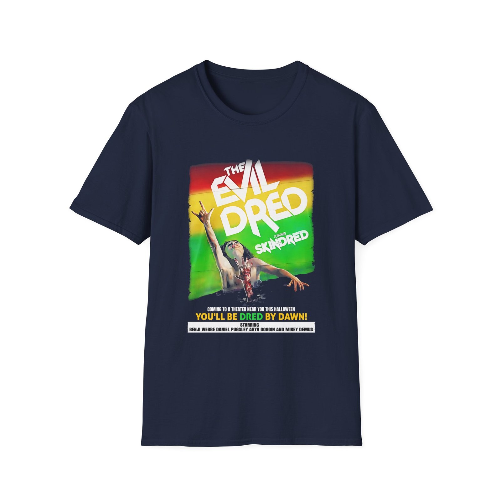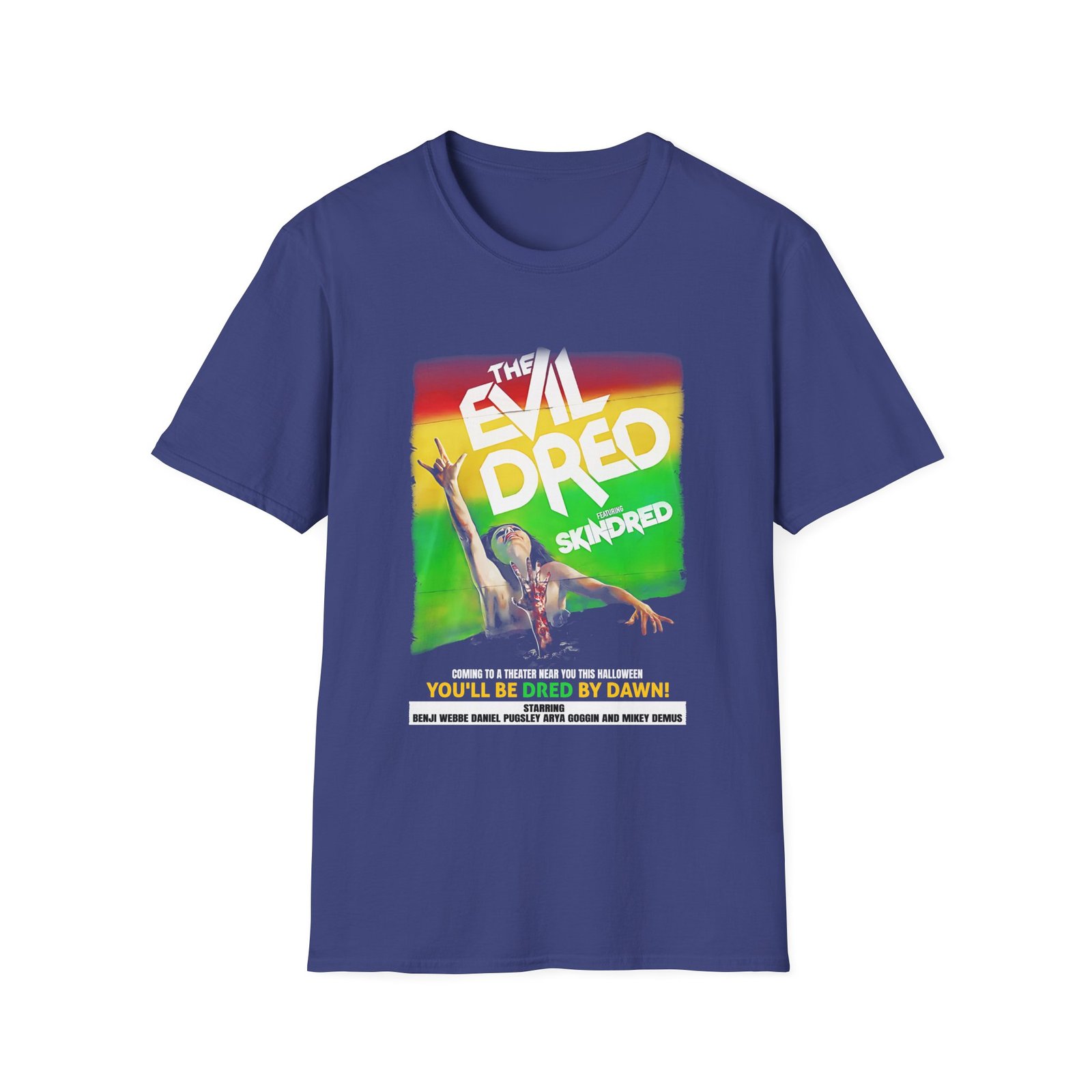 The Skindred the Evil Dred unisex soft-style t-shirt puts a new spin on casual comfort. Made from very soft materials, this tee is 100% cotton for solid colors. Heather colors and sports grey include polyester. The shoulders have twill tape for improved durability. There are no side seams. The collar is made with ribbed knitting to prevent curling damage.