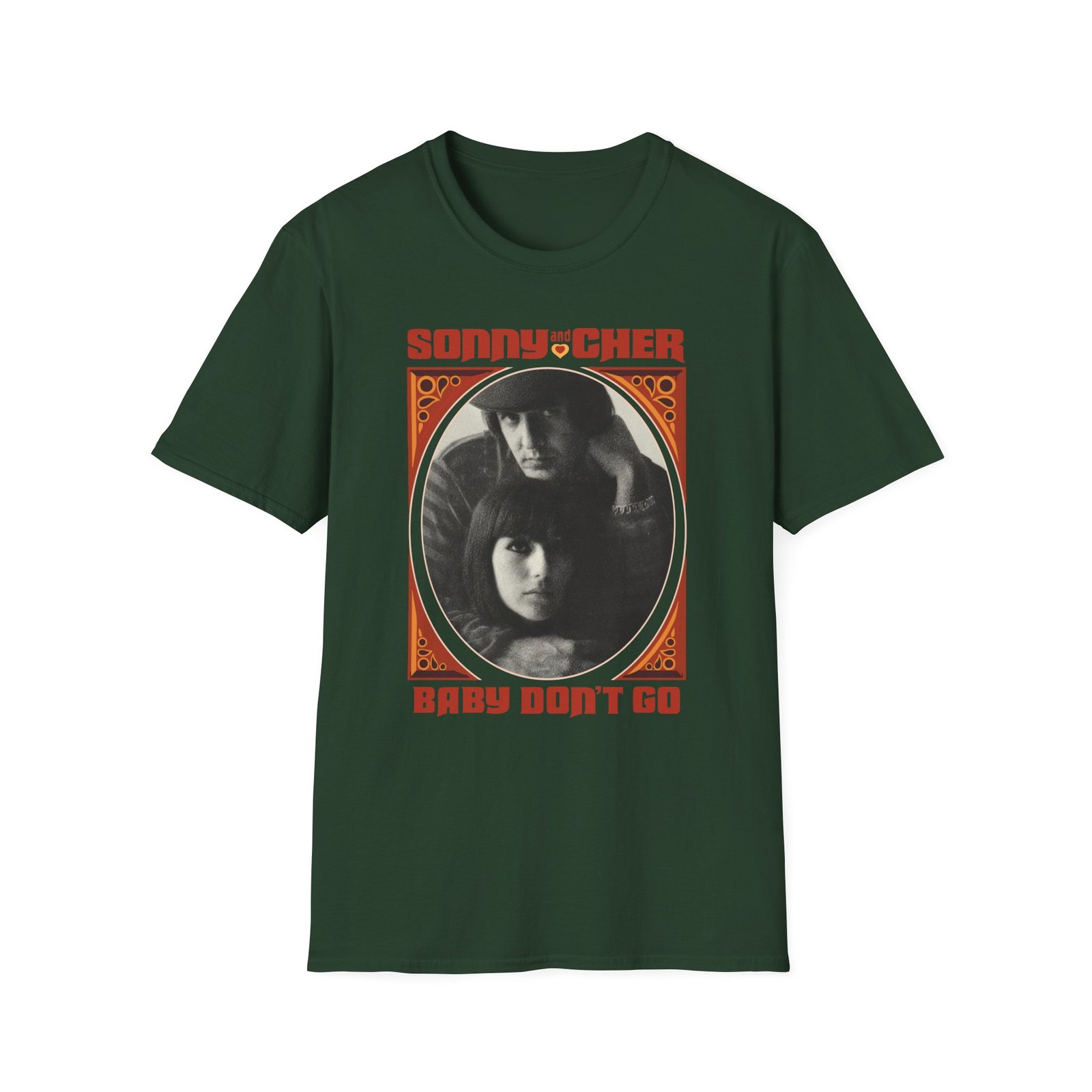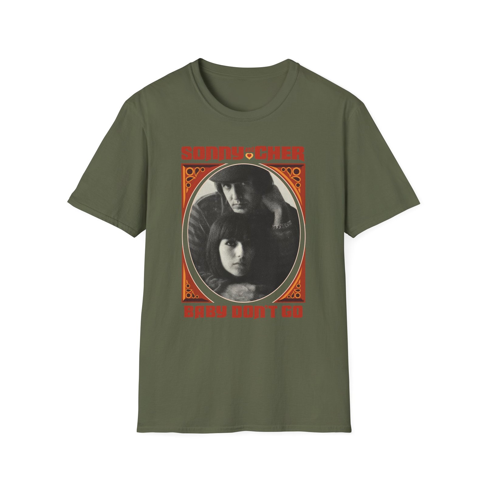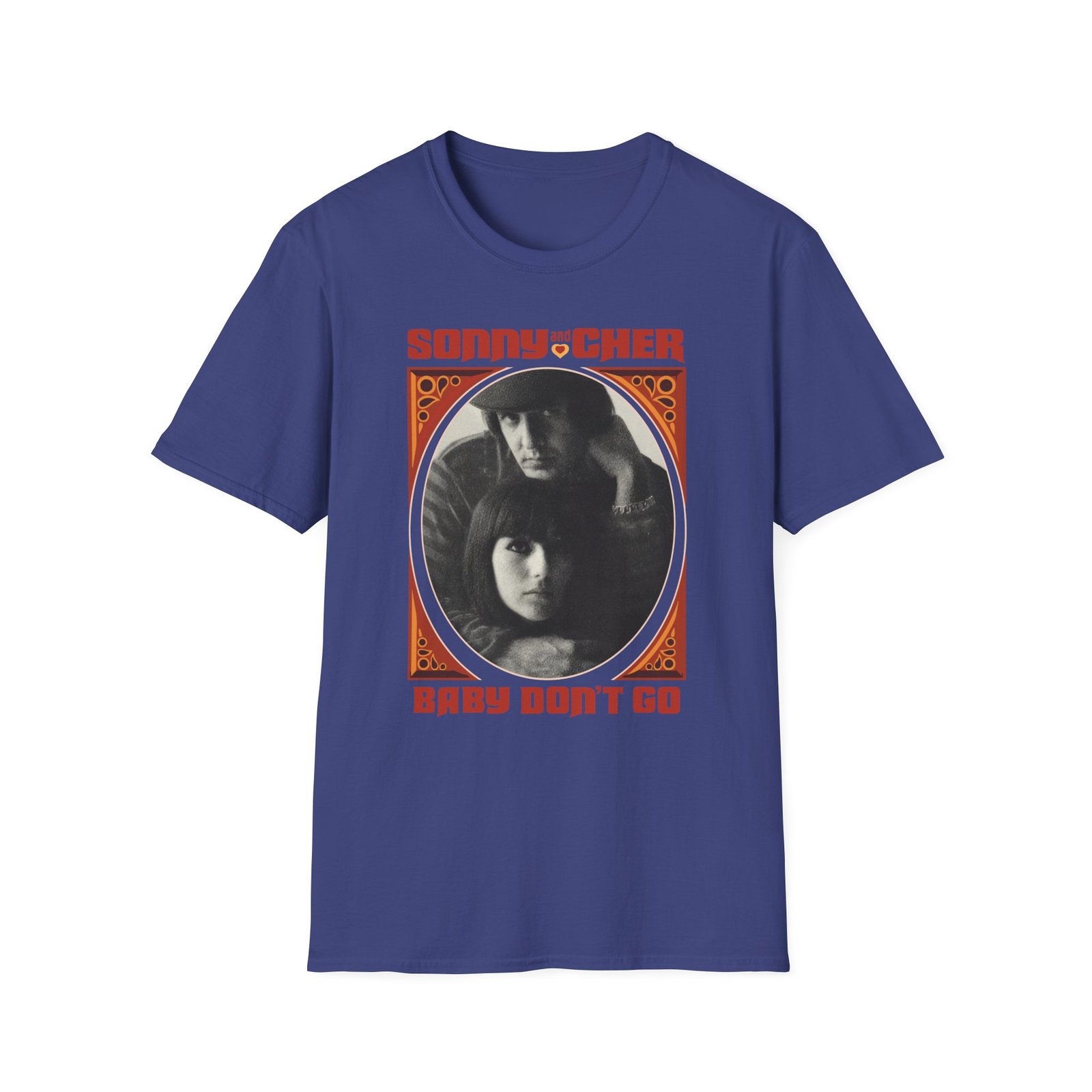 The Sonny & Cher Baby Don’t Go unisex soft-style t-shirt puts a new spin on casual comfort. Made from very soft materials, this tee is 100% cotton for solid colors. Heather colors and sports grey include polyester. The shoulders have twill tape for improved durability. There are no side seams. The collar is made with ribbed knitting to prevent curling damage.