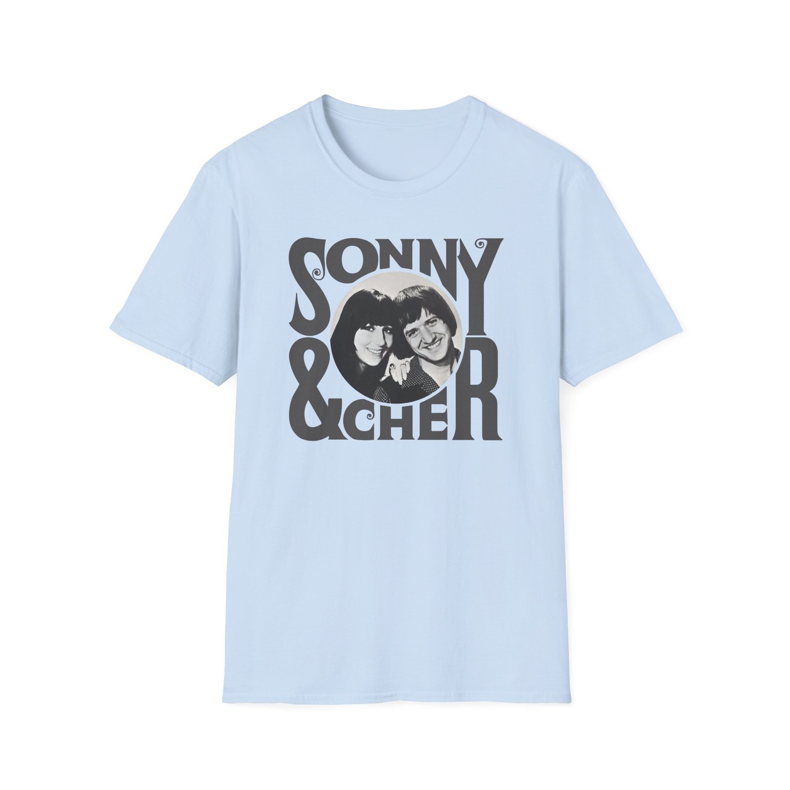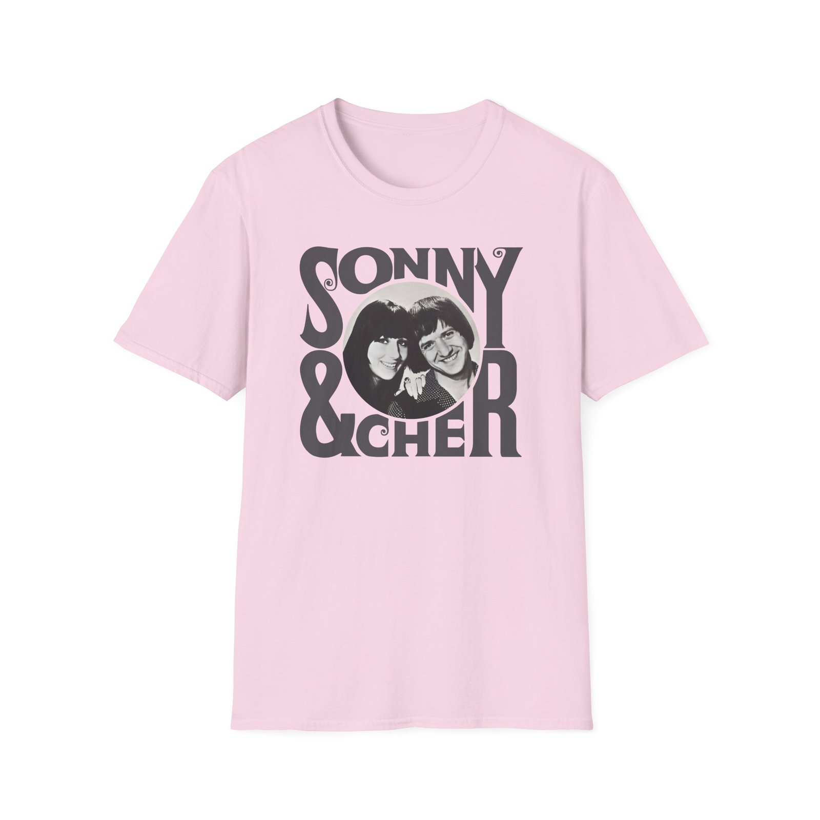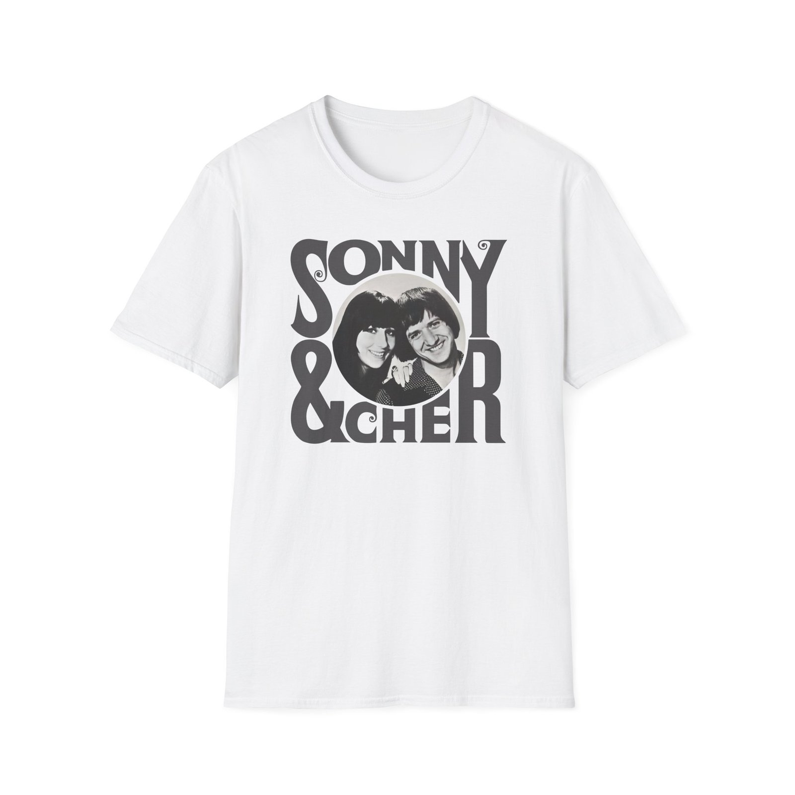 The Sonny & Cher Retro Logo unisex soft-style t-shirt puts a new spin on casual comfort. Made from very soft materials, this tee is 100% cotton for solid colors. Heather colors and sports grey include polyester. The shoulders have twill tape for improved durability. There are no side seams. The collar is made with ribbed knitting to prevent curling damage.