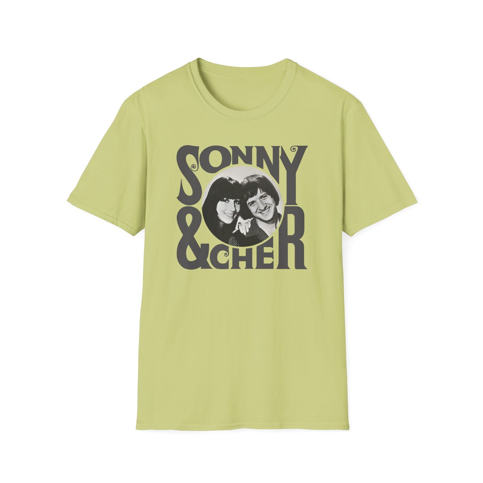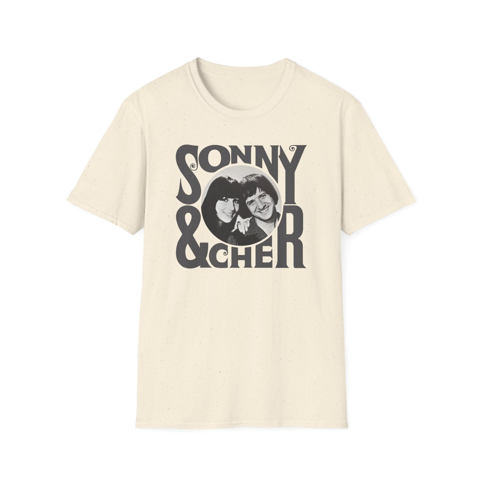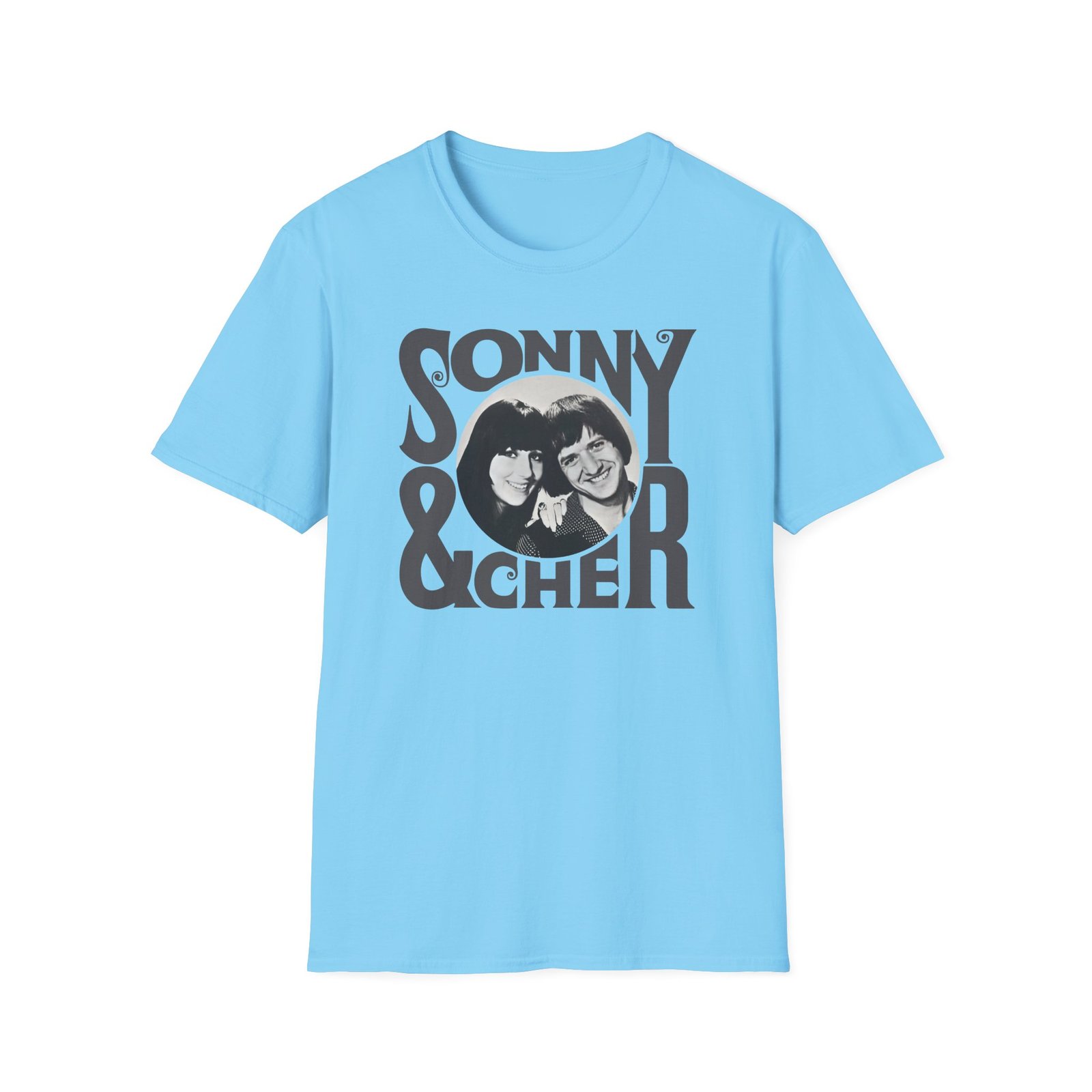 The Sonny & Cher Retro Logo unisex soft-style t-shirt puts a new spin on casual comfort. Made from very soft materials, this tee is 100% cotton for solid colors. Heather colors and sports grey include polyester. The shoulders have twill tape for improved durability. There are no side seams. The collar is made with ribbed knitting to prevent curling damage.