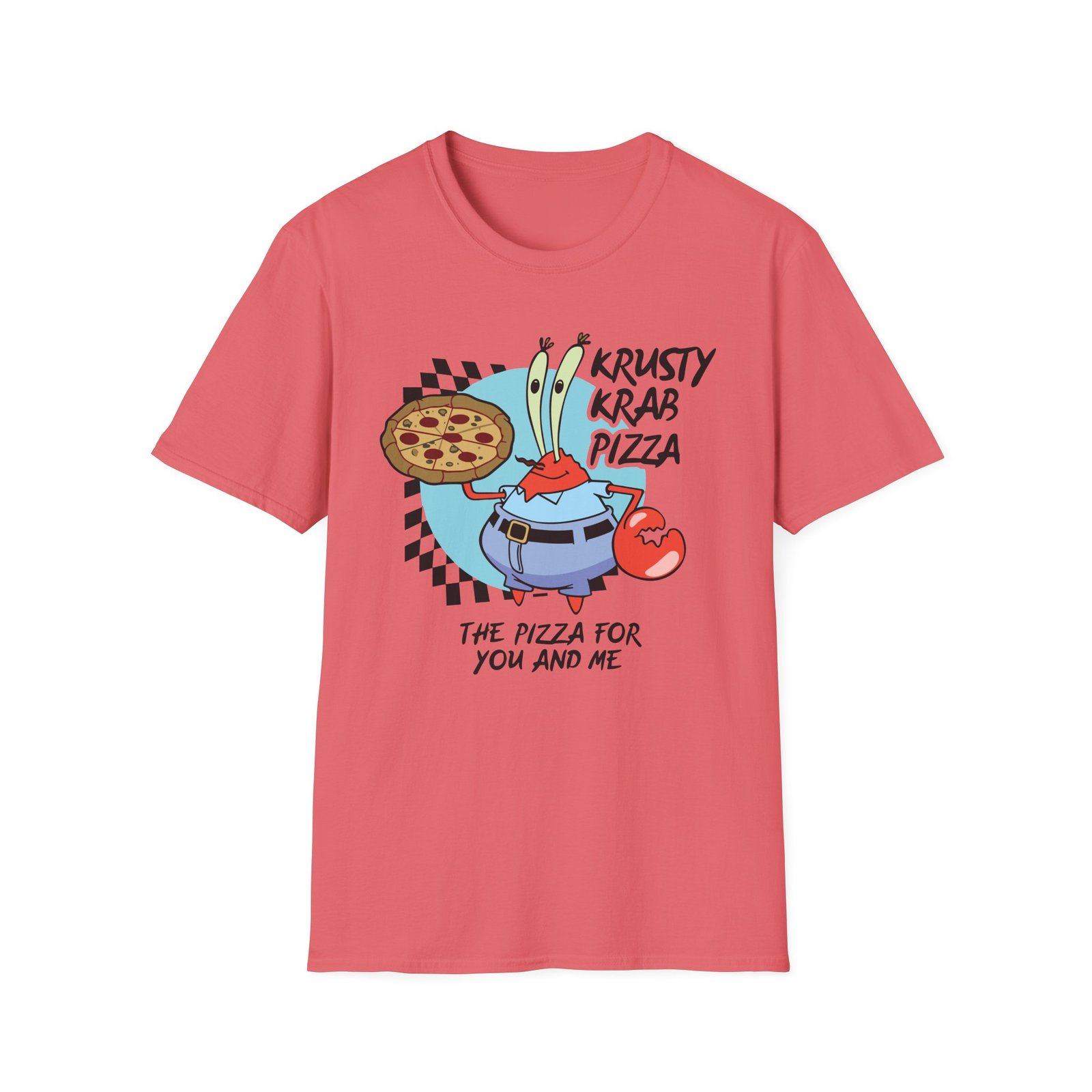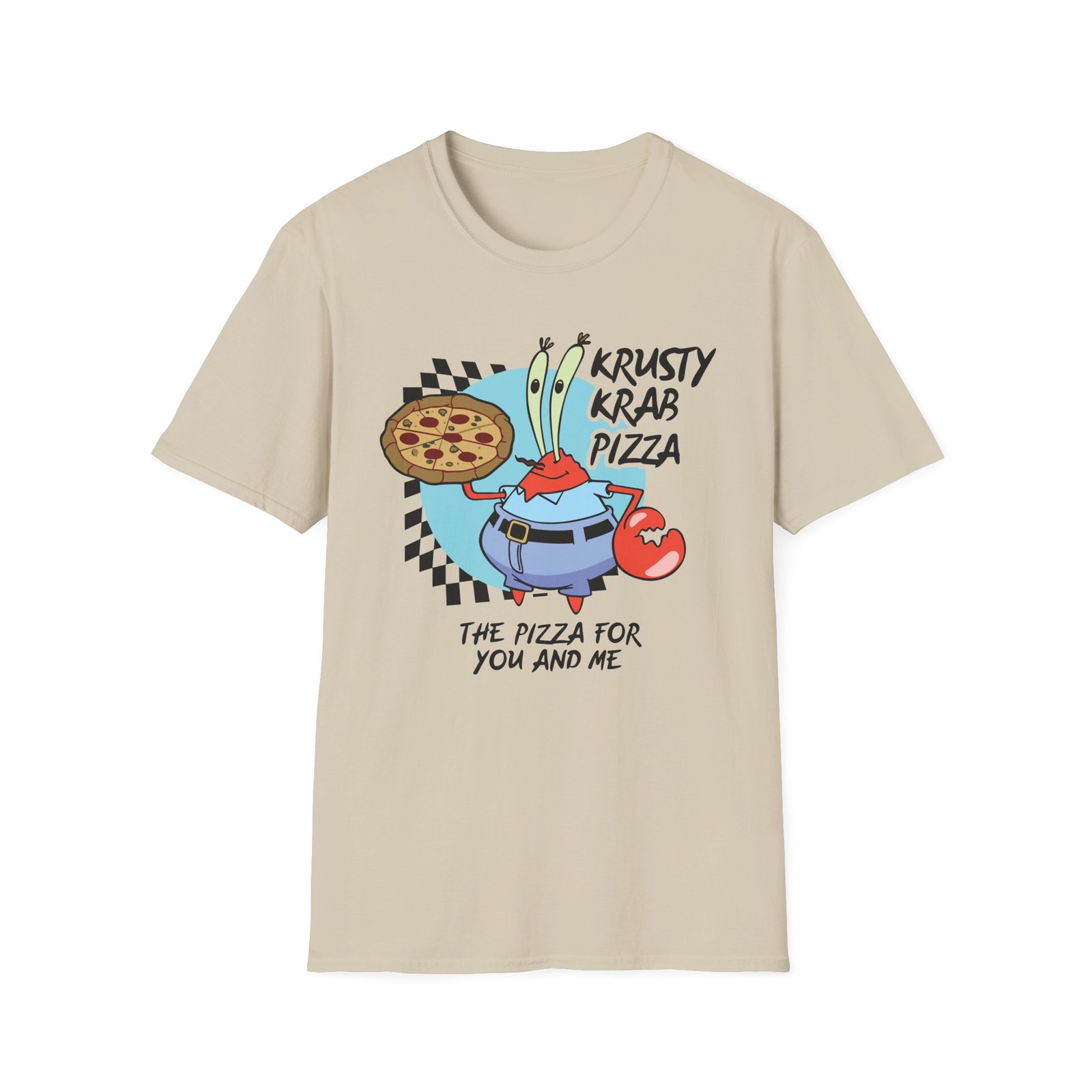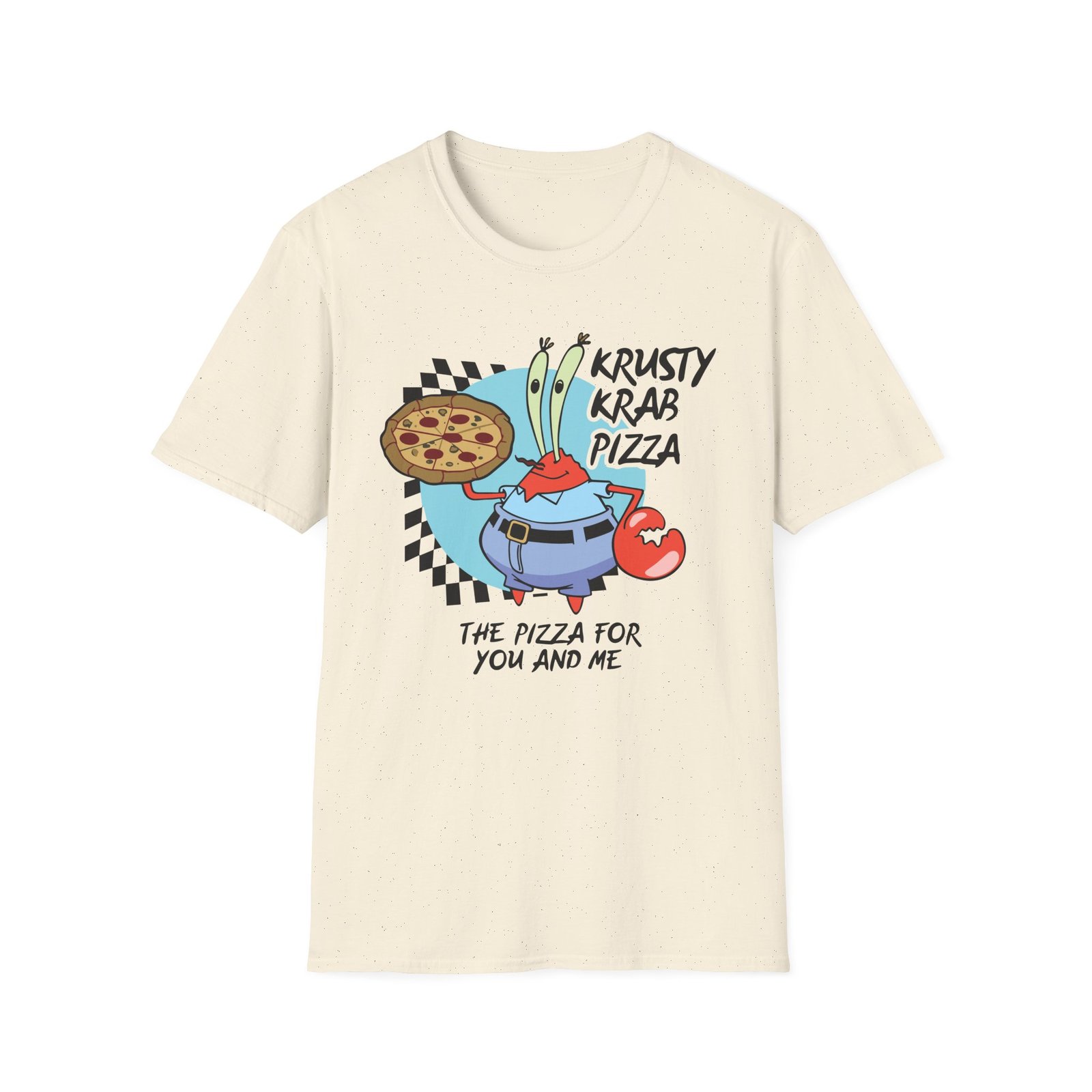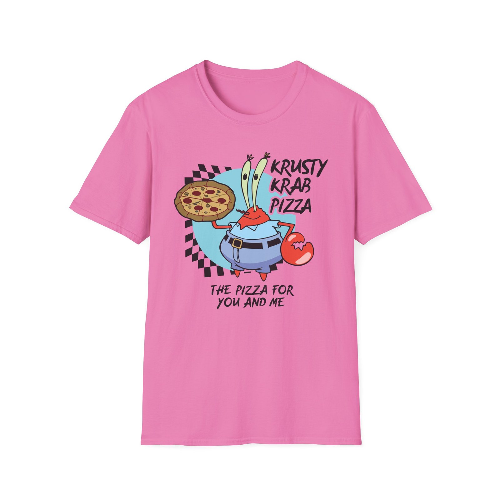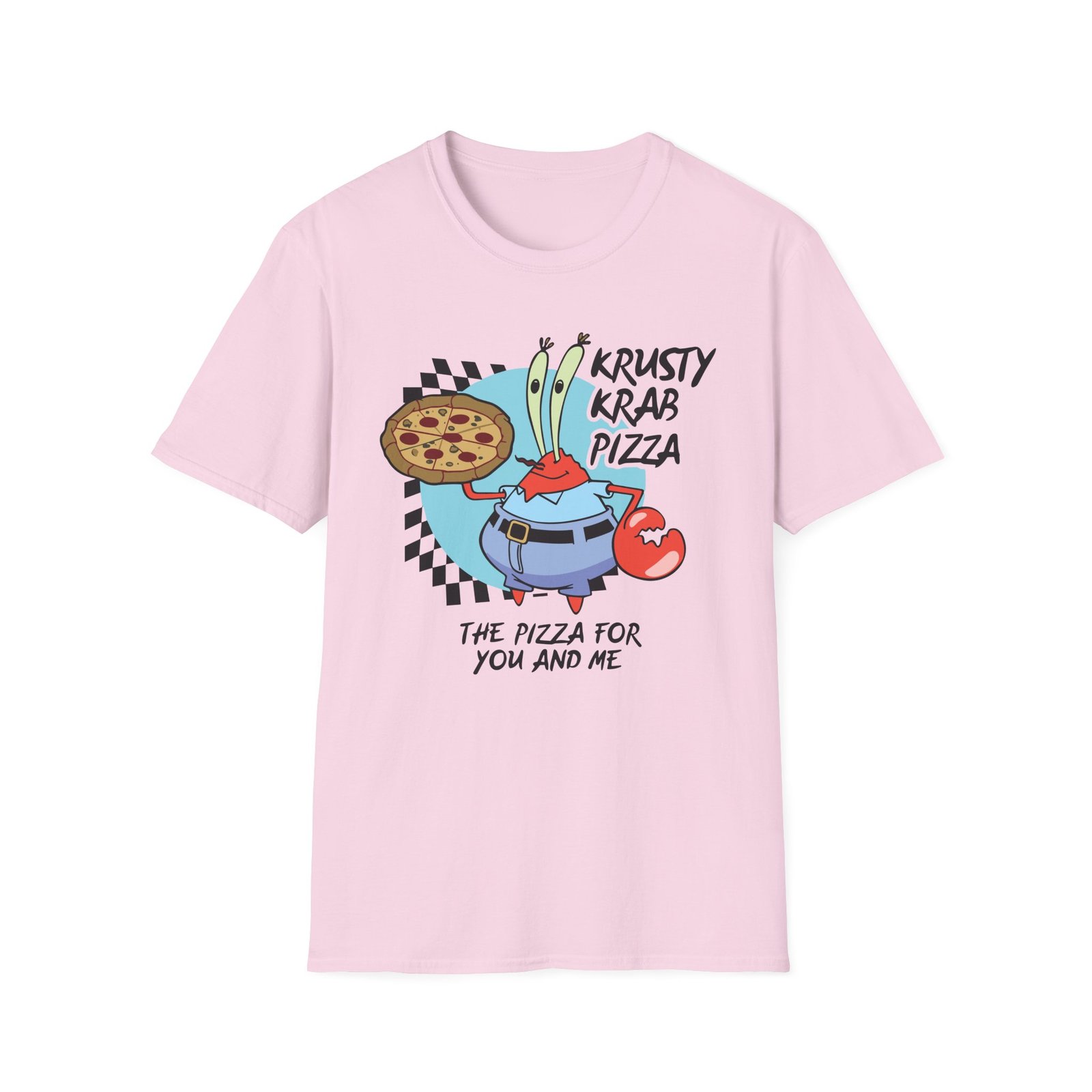 The Spongebob The Krusty Krab Pizza Unisex Softstyle T-Shirt puts a new spin on casual comfort. Made from very soft materials, this tee is 100% cotton for solid colors. Heather colors and sports grey include polyester. The shoulders have twill tape for improved durability. There are no side seams. The collar is made with ribbed knitting to prevent curling damage.