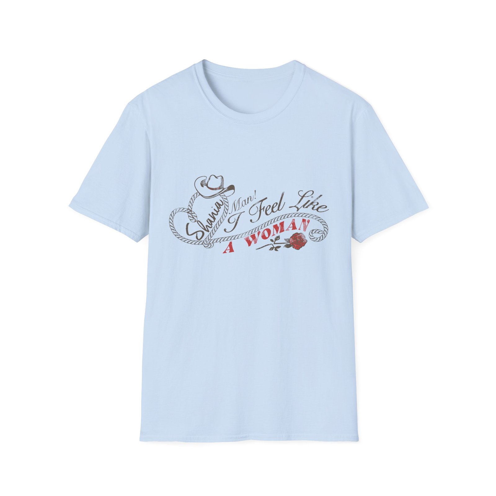 The ST Man I Feel Like a Woman unisex soft-style t-shirt puts a new spin on casual comfort. Made from very soft materials, this tee is 100% cotton for solid colors. Heather colors and sports grey include polyester. The shoulders have twill tape for improved durability. There are no side seams. The collar is made with ribbed knitting to prevent curling damage.