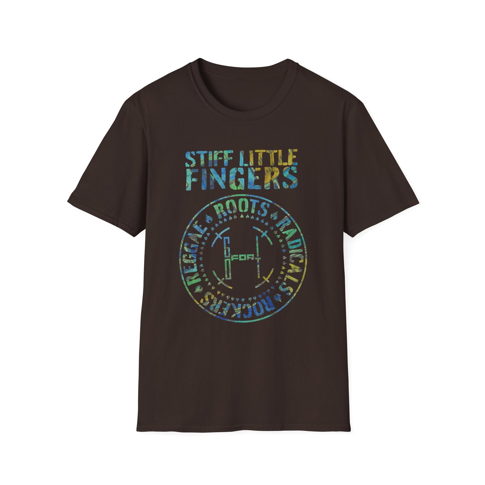 The Stiff Little Fingers Roots Radicals unisex soft-style t-shirt puts a new spin on casual comfort. Made from very soft materials, this tee is 100% cotton for solid colors. Heather colors and sports grey include polyester. The shoulders have twill tape for improved durability. There are no side seams. The collar is made with ribbed knitting to prevent curling damage.