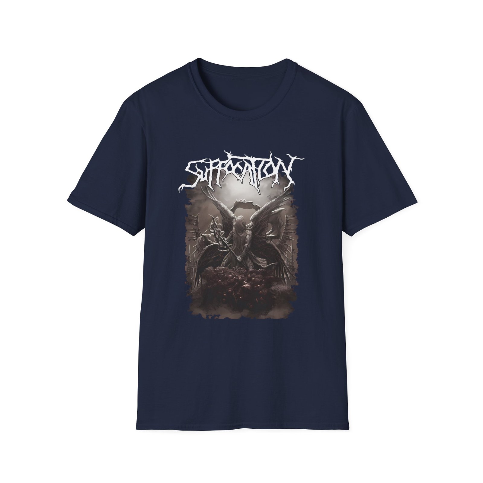 The Suffocation Shred Angel Unisex Softstyle T-Shirt puts a new spin on casual comfort. Made from very soft materials, this tee is 100% cotton for solid colors. Heather colors and sports grey include polyester. The shoulders have twill tape for improved durability. There are no side seams. The collar is made with ribbed knitting to prevent curling damage.