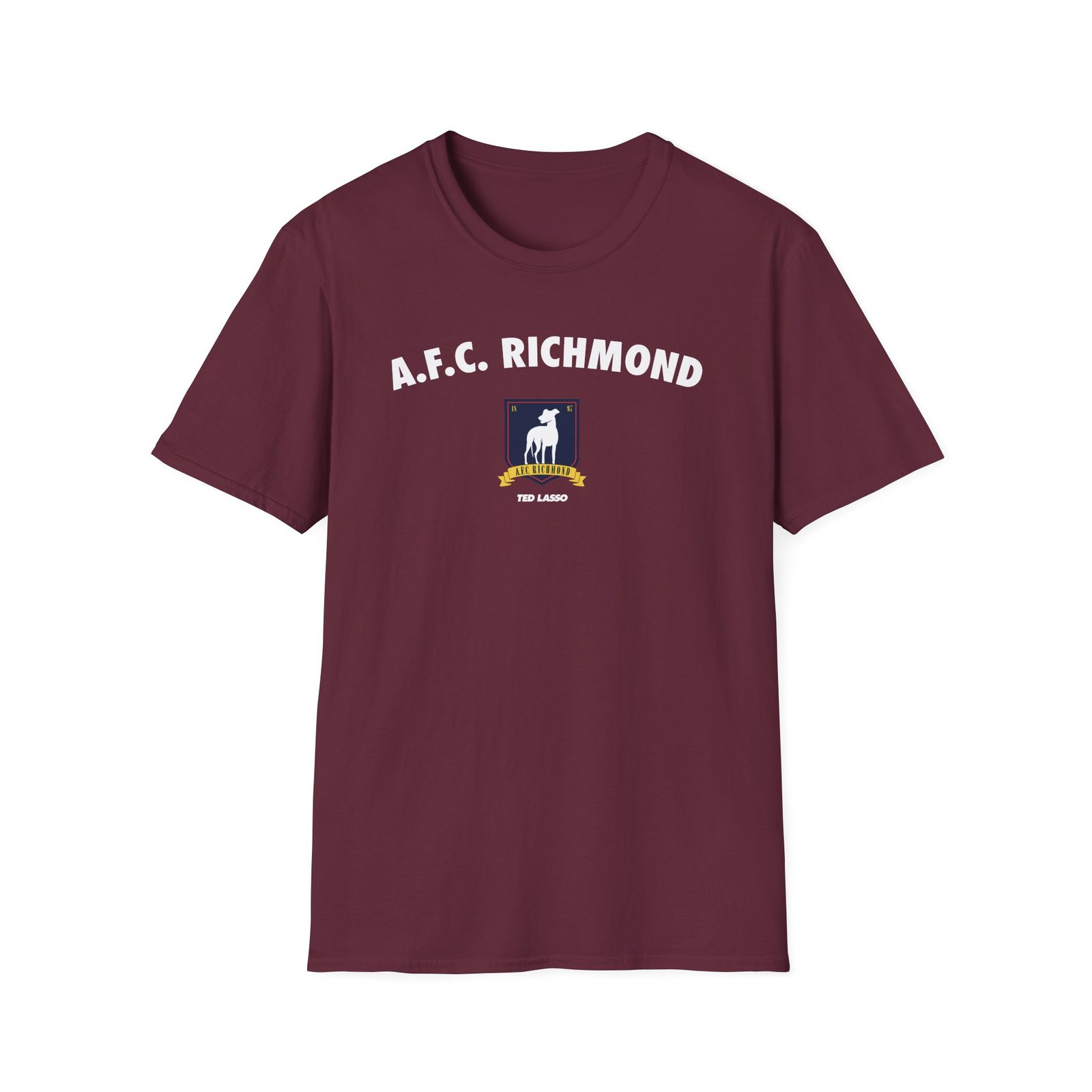 The Ted Lasso a.f.c. Richmond unisex soft-style t-shirt puts a new spin on casual comfort. Made from very soft materials, this tee is 100% cotton for solid colors. Heather colors and sports grey include polyester. The shoulders have twill tape for improved durability. There are no side seams. The collar is made with ribbed knitting to prevent curling damage.