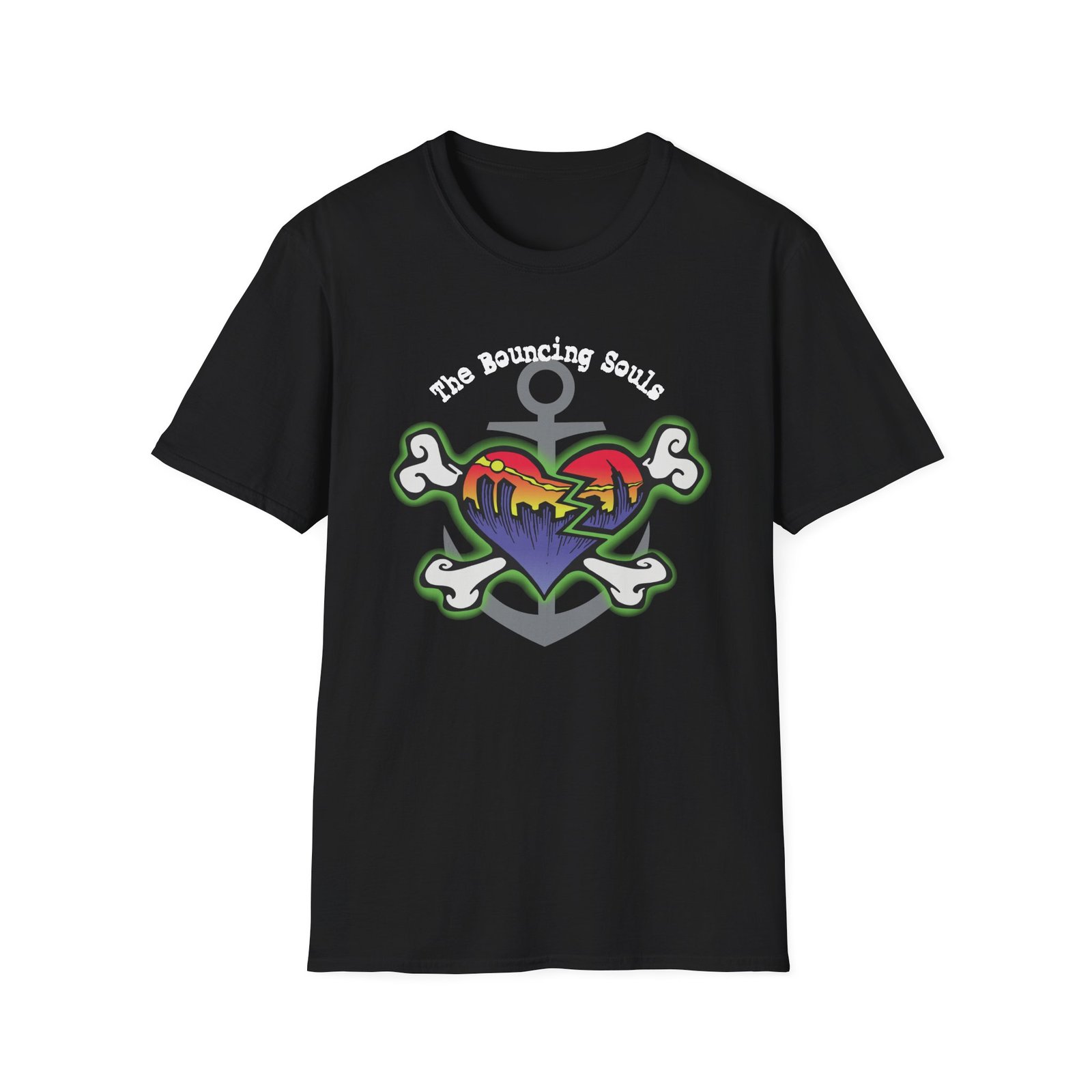 The The Bouncing Souls Skyline Heart unisex soft-style t-shirt puts a new spin on casual comfort. Made from very soft materials, this tee is 100% cotton for solid colors. Heather colors and sports grey include polyester. The shoulders have twill tape for improved durability. There are no side seams. The collar is made with ribbed knitting to prevent curling damage.