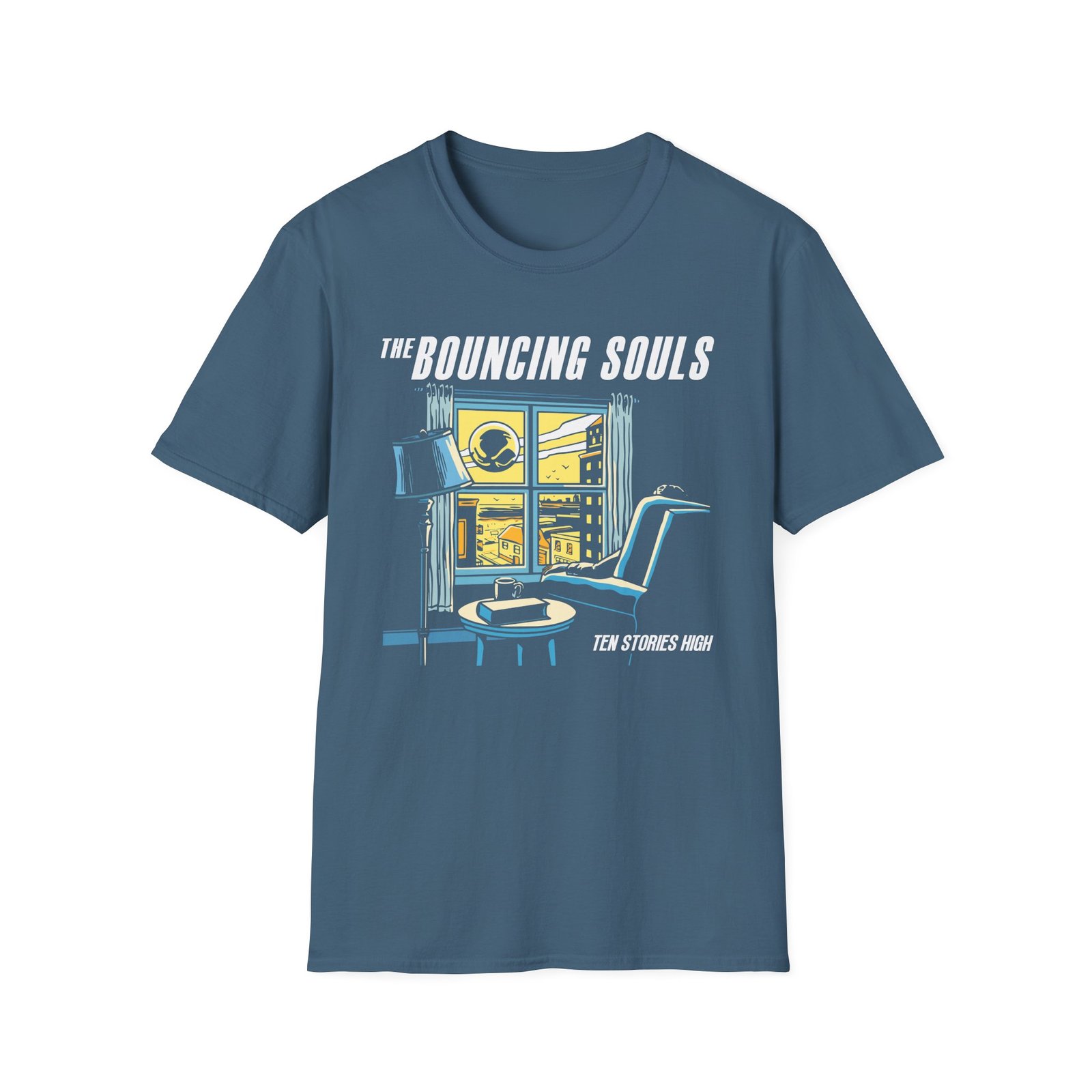 The The Bouncing Souls Ten Stories High Album unisex soft-style t-shirt puts a new spin on casual comfort. Made from very soft materials, this tee is 100% cotton for solid colors. Heather colors and sports grey include polyester. The shoulders have twill tape for improved durability. There are no side seams. The collar is made with ribbed knitting to prevent curling damage.