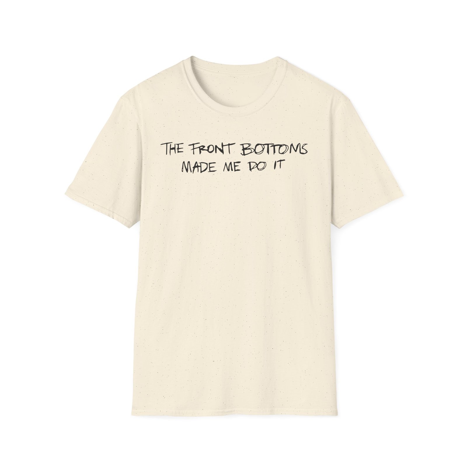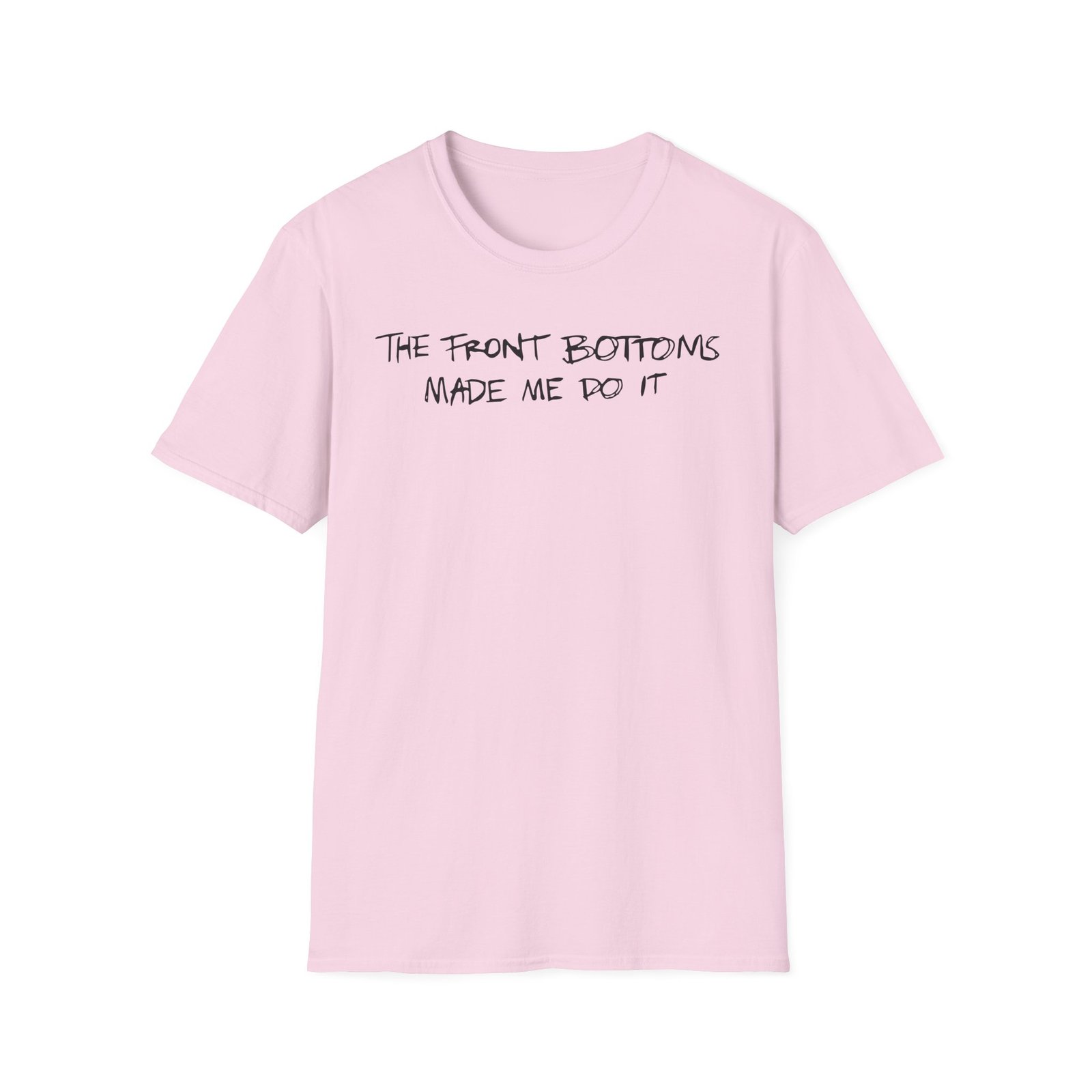 The The Front Bottoms Made Me Do It Unisex Softstyle T-Shirt puts a new spin on casual comfort. Made from very soft materials, this tee is 100% cotton for solid colors. Heather colors and sports grey include polyester. The shoulders have twill tape for improved durability. There are no side seams. The collar is made with ribbed knitting to prevent curling damage.