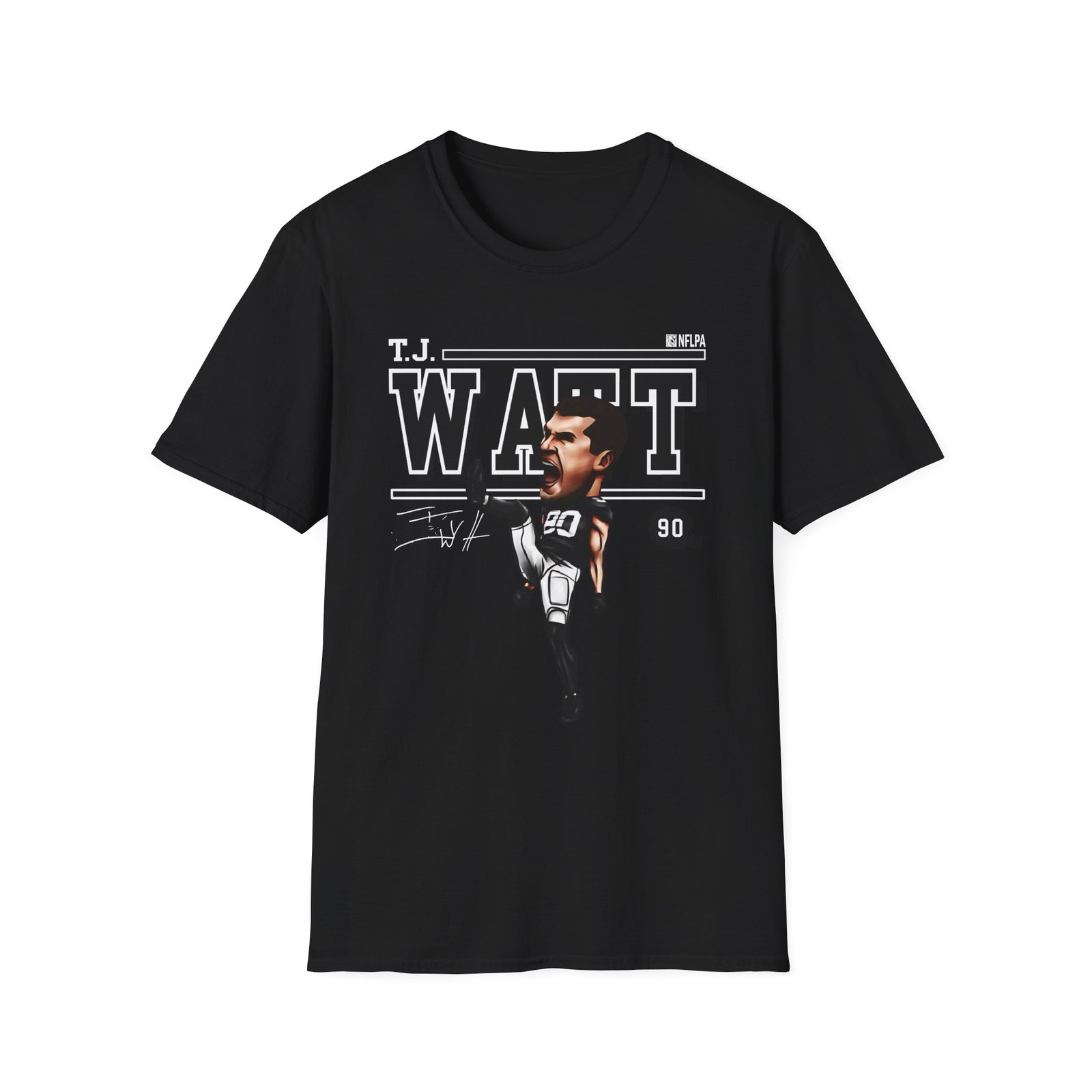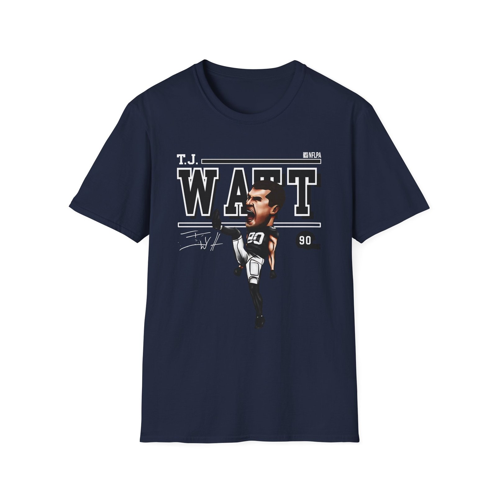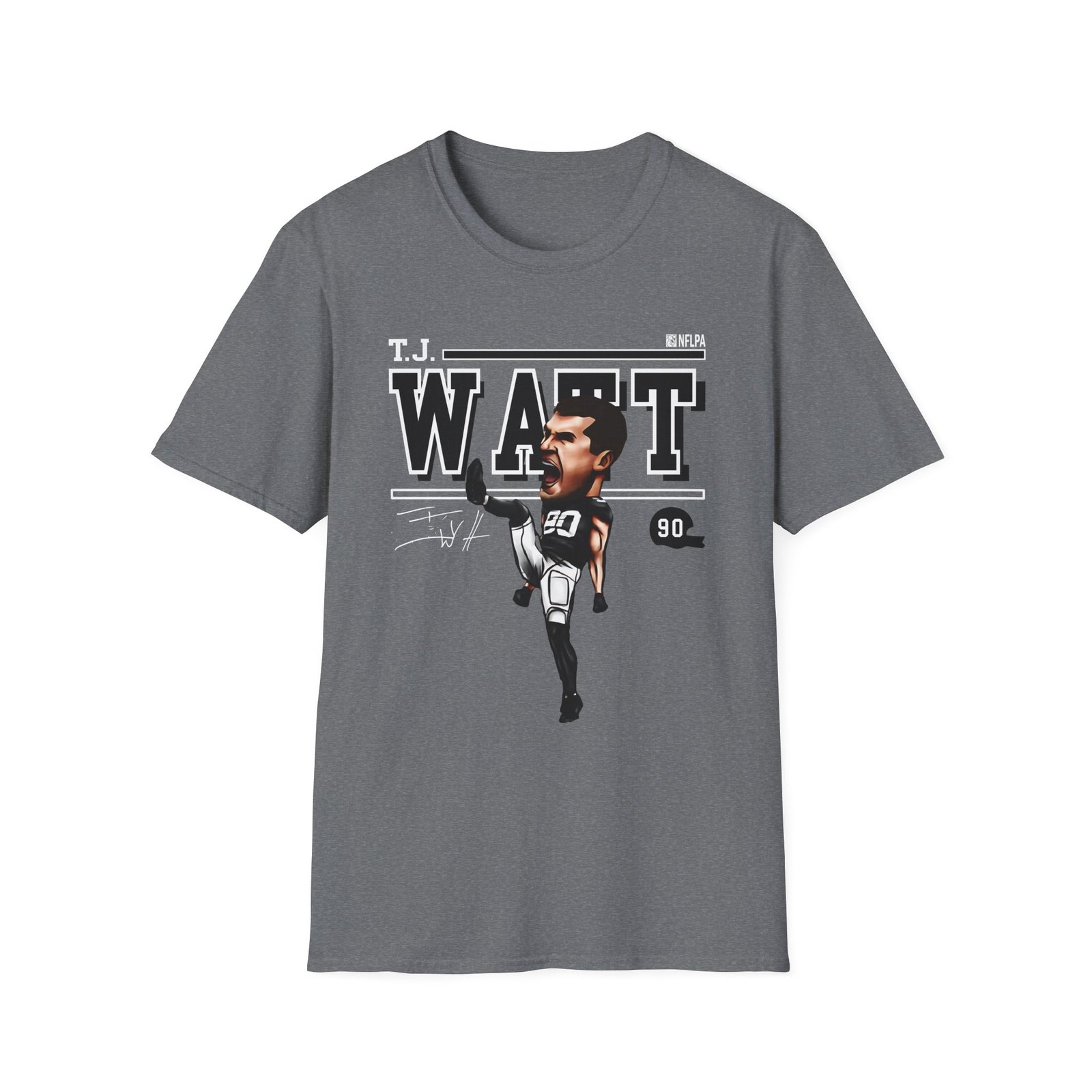 The Tj Watt Cartoon unisex soft-style t-shirt puts a new spin on casual comfort. Made from very soft materials, this tee is 100% cotton for solid colors. Heather colors and sports grey include polyester. The shoulders have twill tape for improved durability. There are no side seams. The collar is made with ribbed knitting to prevent curling damage.