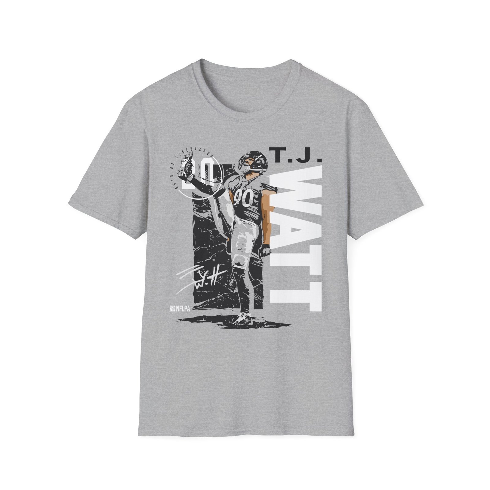 The Tj Watt unisex soft-style t-shirt puts a new spin on casual comfort. Made from very soft materials, this tee is 100% cotton for solid colors. Heather colors and sports grey include polyester. The shoulders have twill tape for improved durability. There are no side seams. The collar is made with ribbed knitting to prevent curling damage.