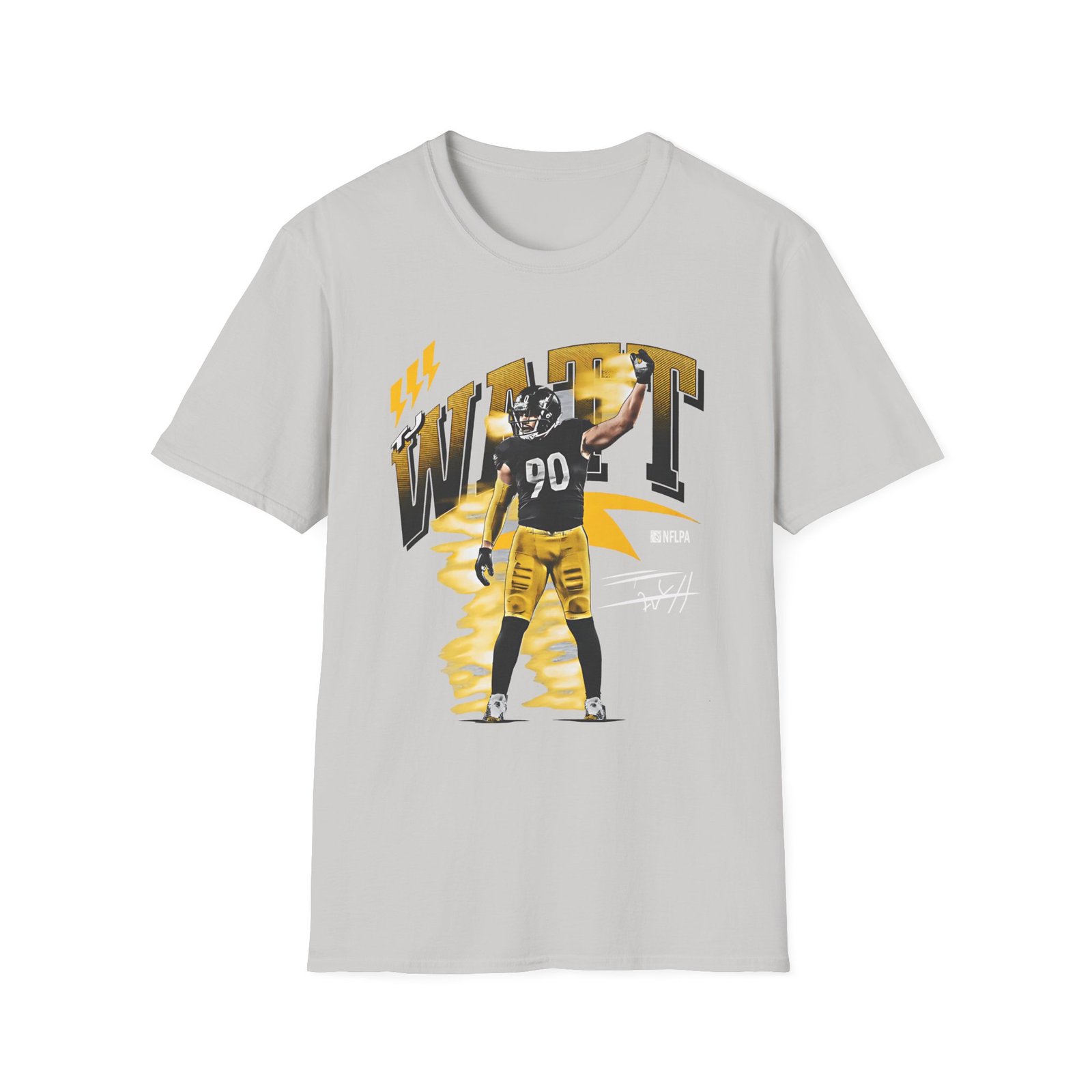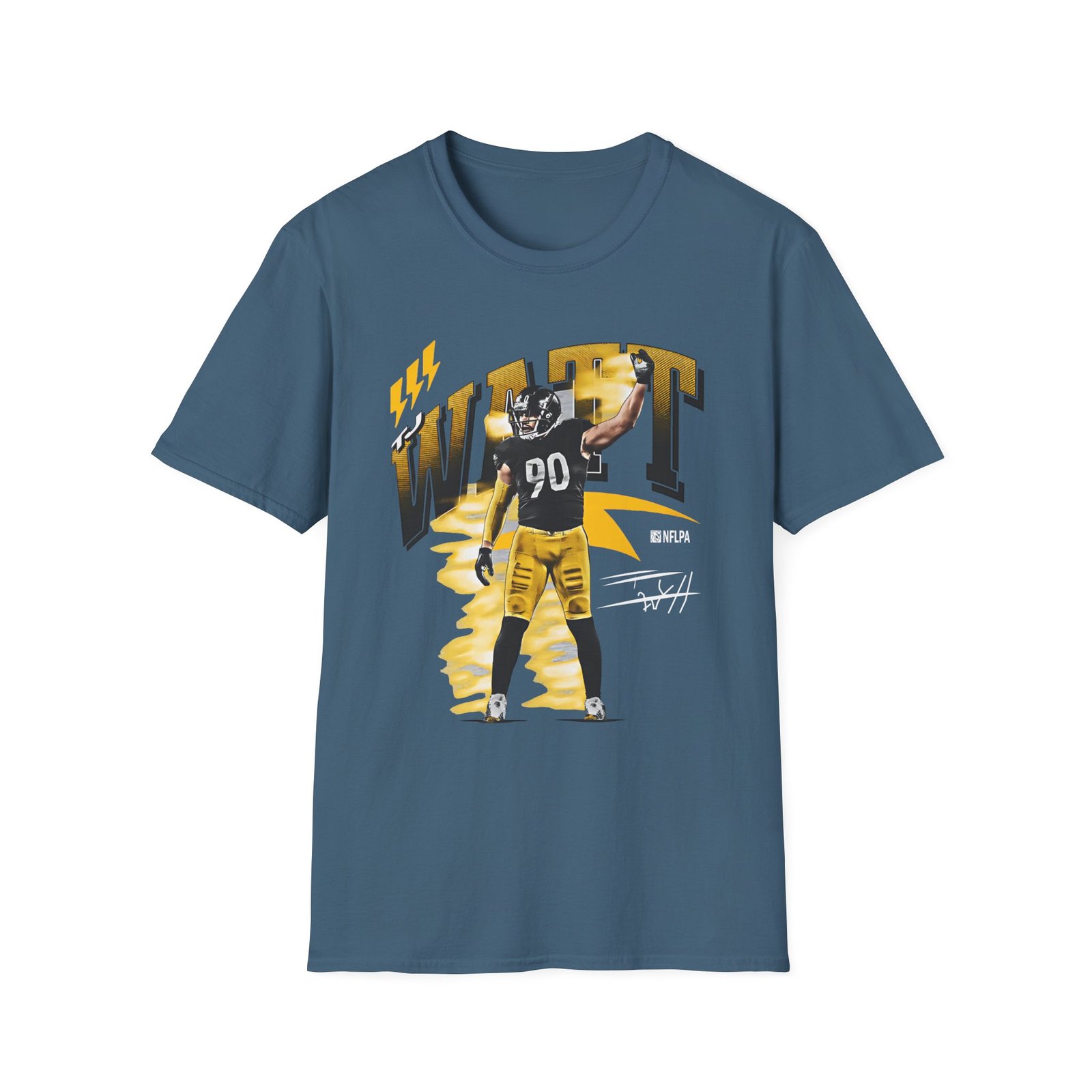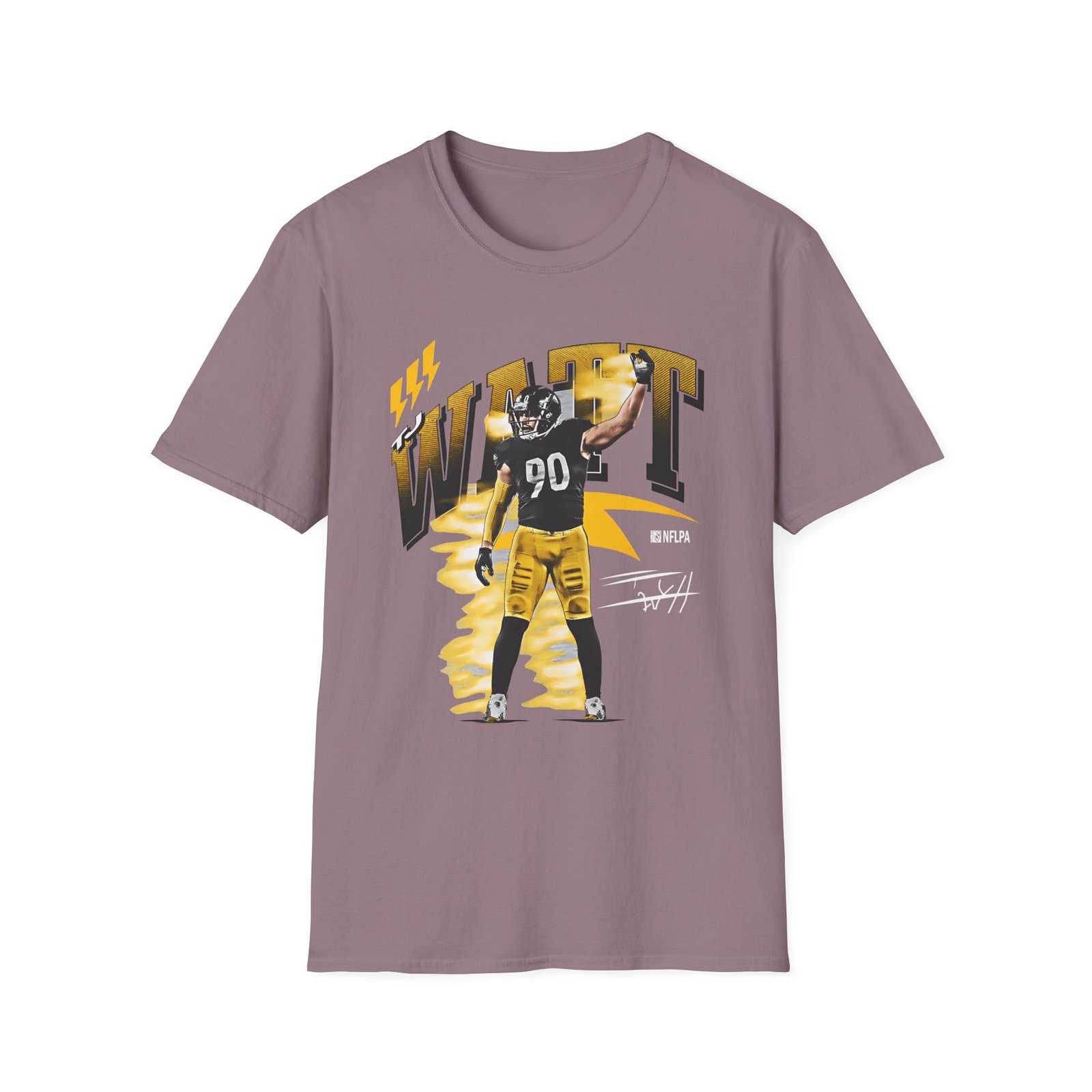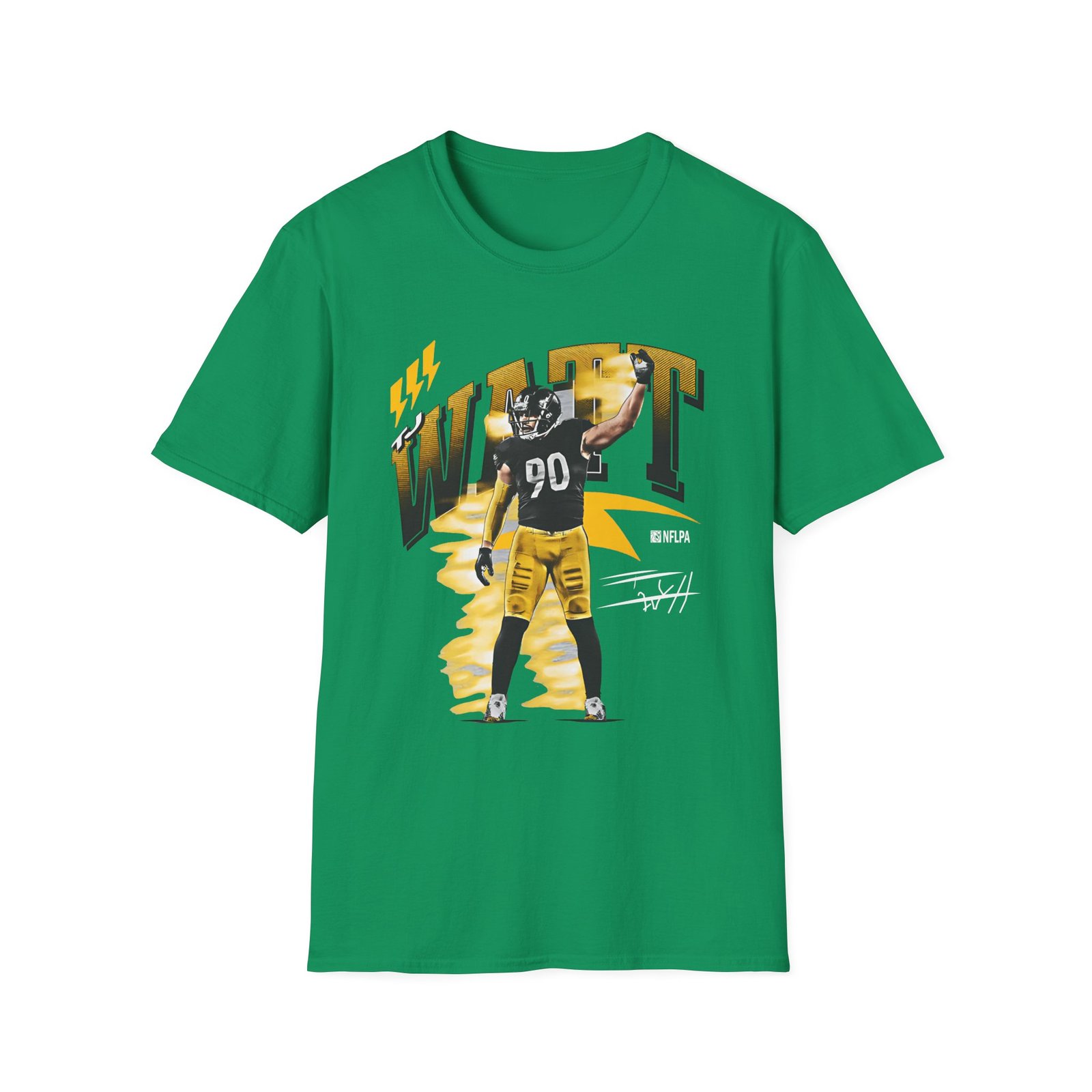 The Tj Watt unisex soft-style t-shirt puts a new spin on casual comfort. Made from very soft materials, this tee is 100% cotton for solid colors. Heather colors and sports grey include polyester. The shoulders have twill tape for improved durability. There are no side seams. The collar is made with ribbed knitting to prevent curling damage.