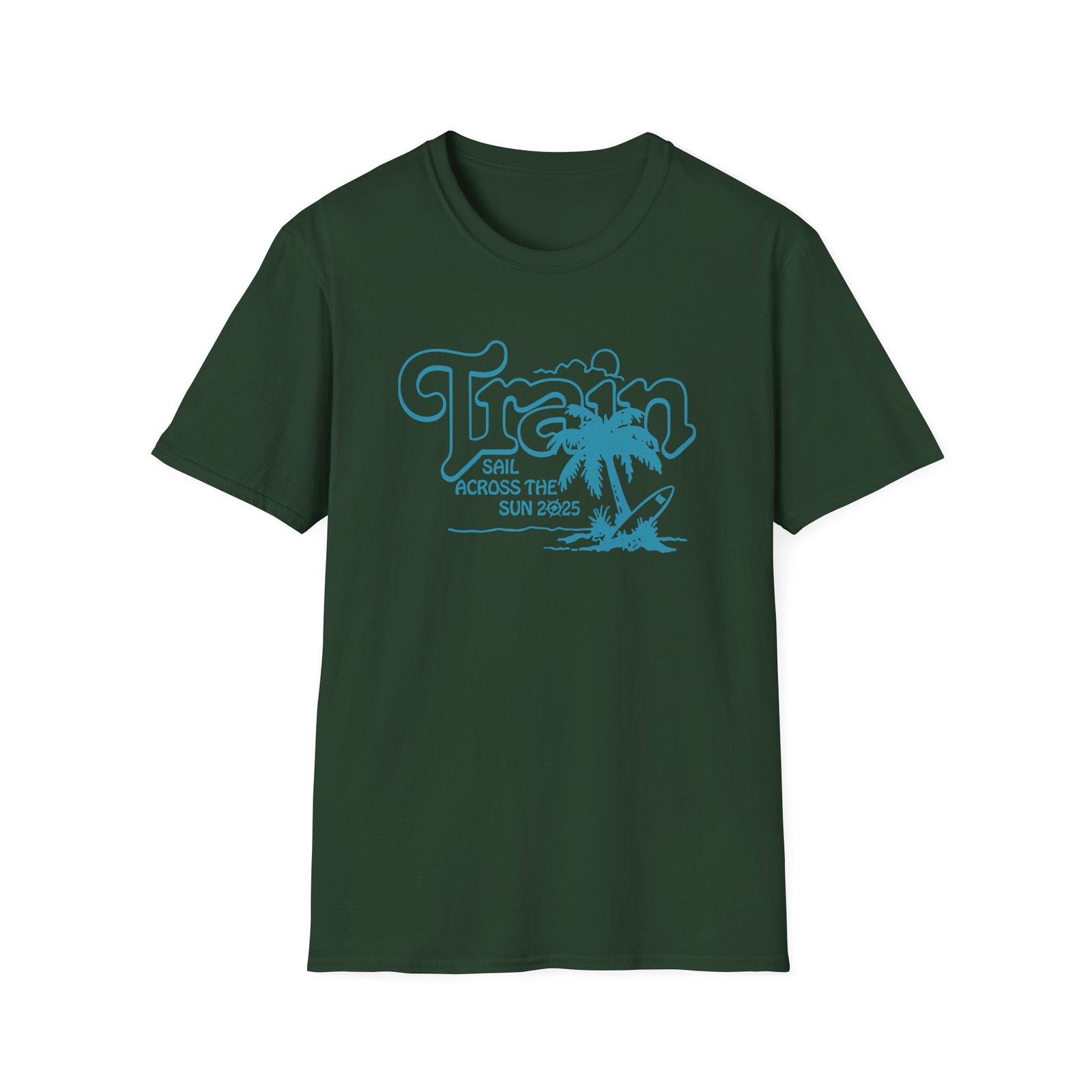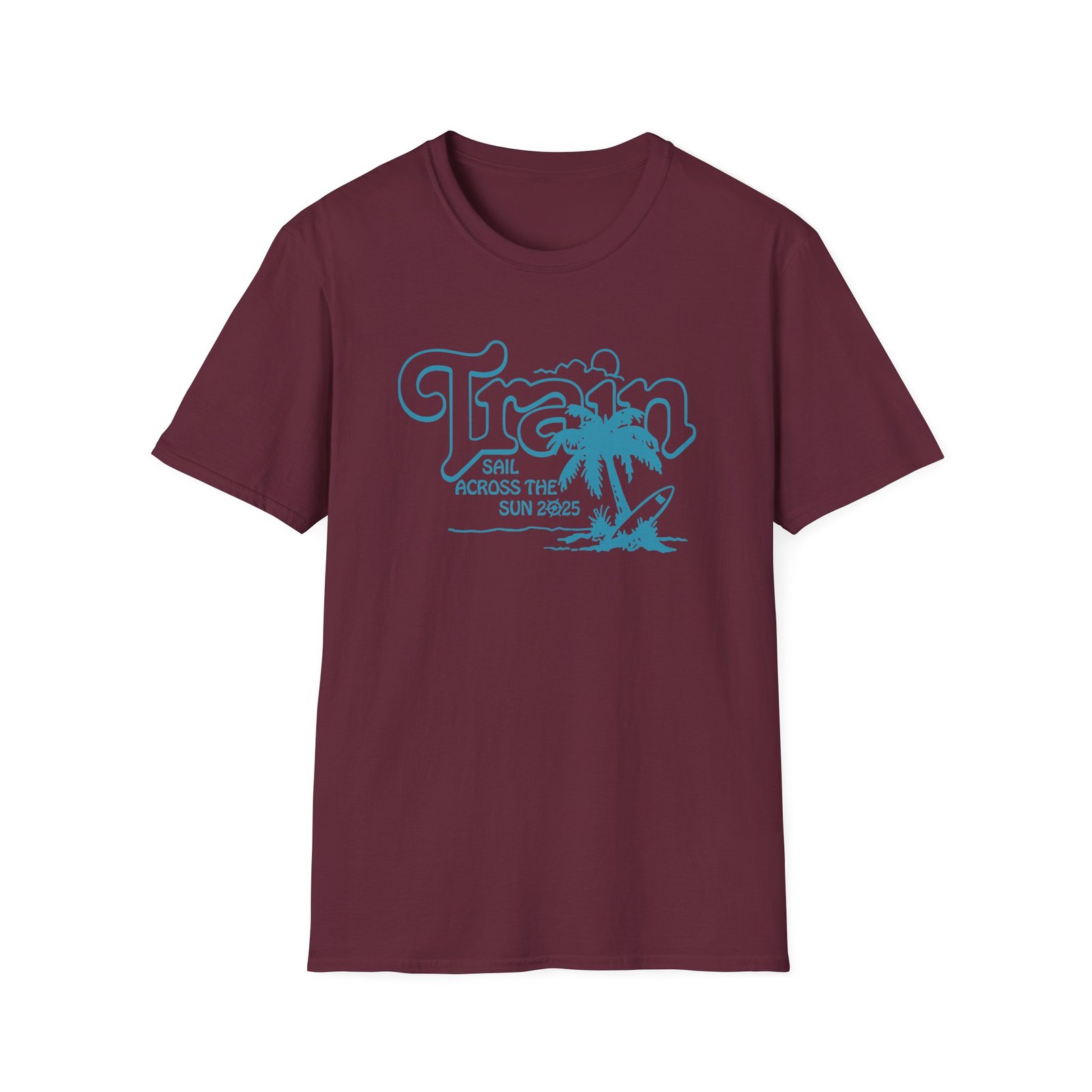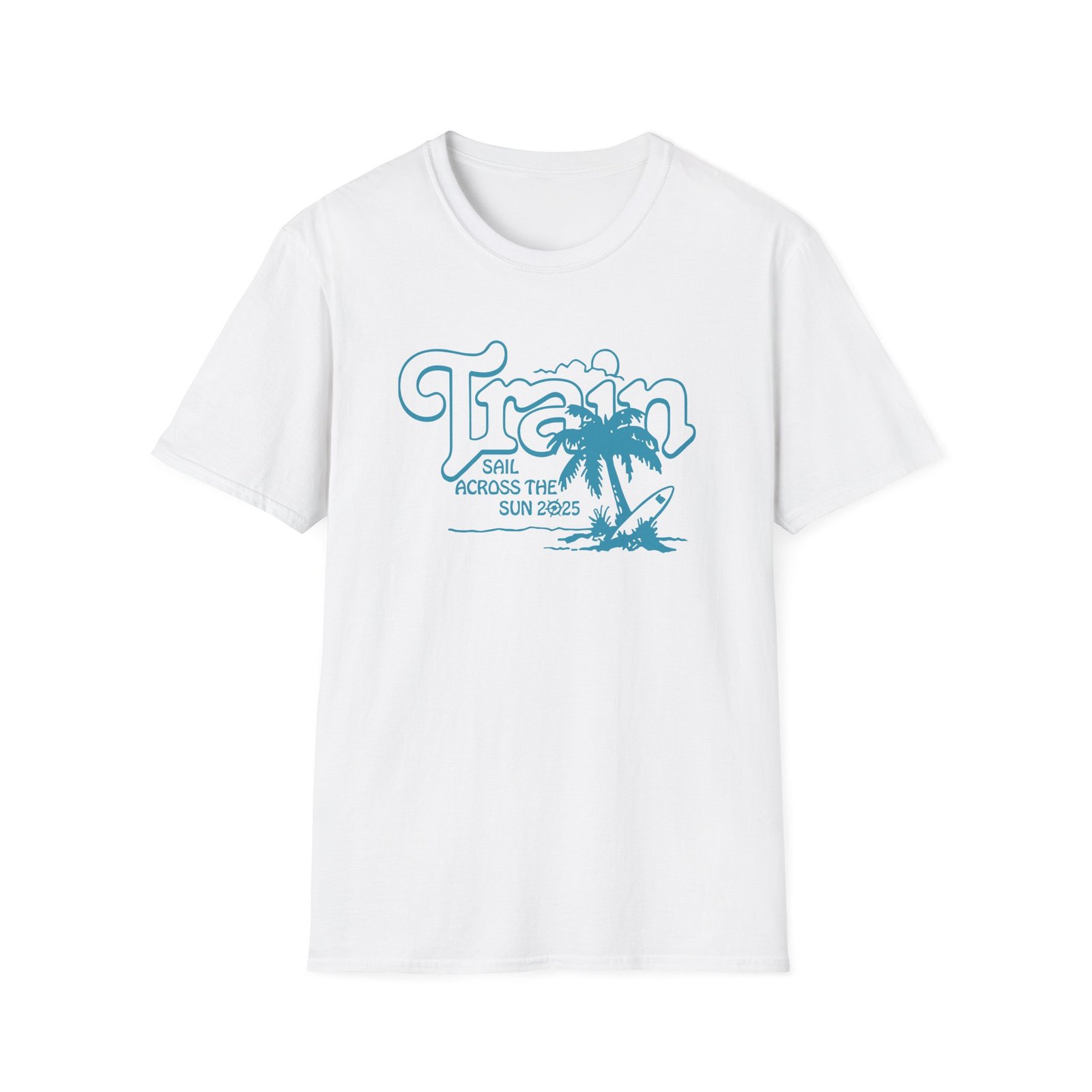 The Train Sail Across the Sun 2025 Palm Tree unisex soft-style t-shirt puts a new spin on casual comfort. Made from very soft materials, this tee is 100% cotton for solid colors. Heather colors and sports grey include polyester. The shoulders have twill tape for improved durability. There are no side seams. The collar is made with ribbed knitting to prevent curling damage.