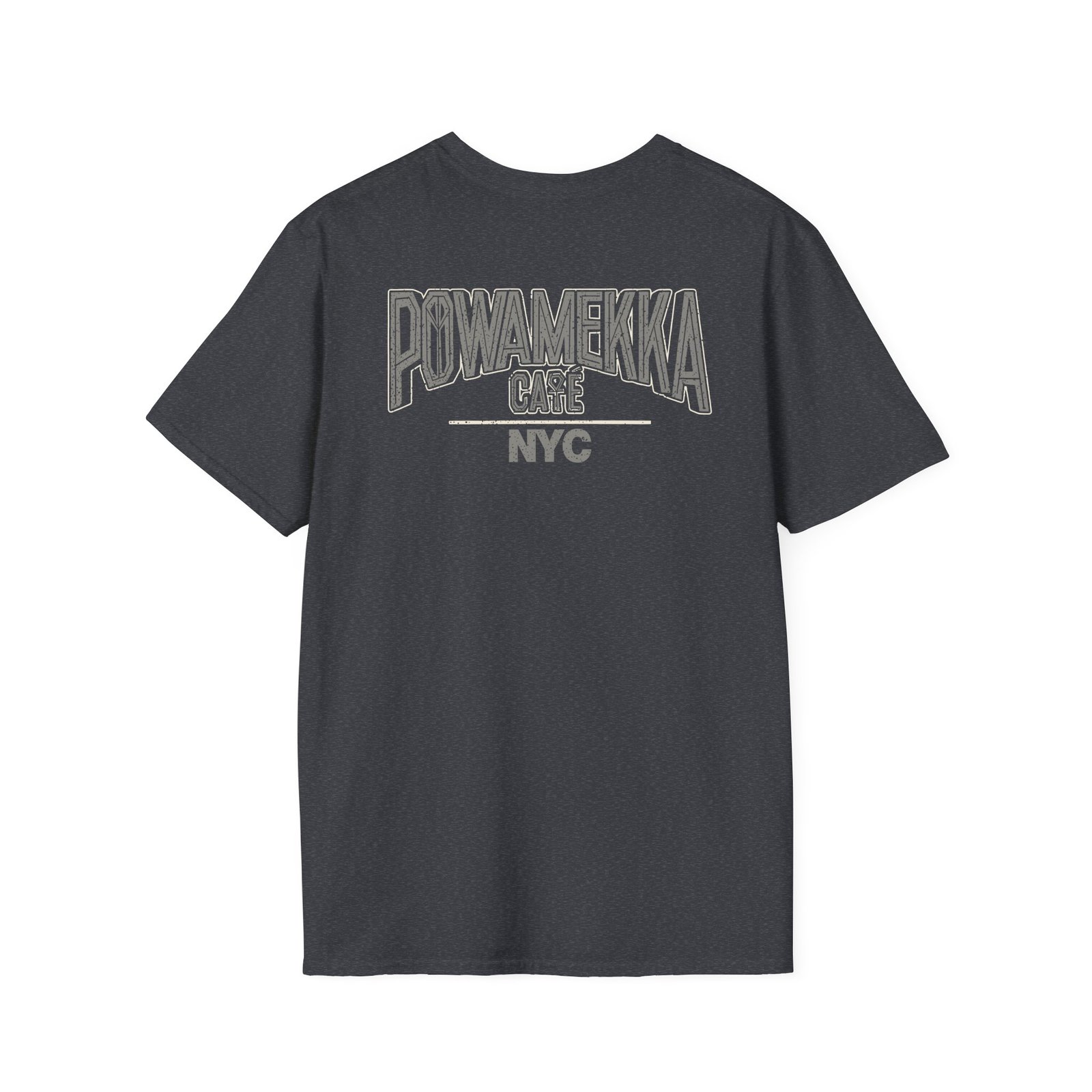 The TS Powamekka Cafe unisex soft-style t-shirt puts a new spin on casual comfort. Made from very soft materials, this tee is 100% cotton for solid colors. Heather colors and sports grey include polyester. The shoulders have twill tape for improved durability. There are no side seams. The collar is made with ribbed knitting to prevent curling damage.