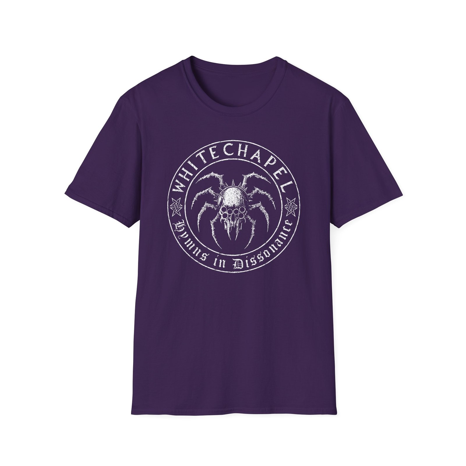 The Whitechapel Spider Skull unisex soft-style t-shirt puts a new spin on casual comfort. Made from very soft materials, this tee is 100% cotton for solid colors. Heather colors and sports grey include polyester. The shoulders have twill tape for improved durability. There are no side seams. The collar is made with ribbed knitting to prevent curling damage.