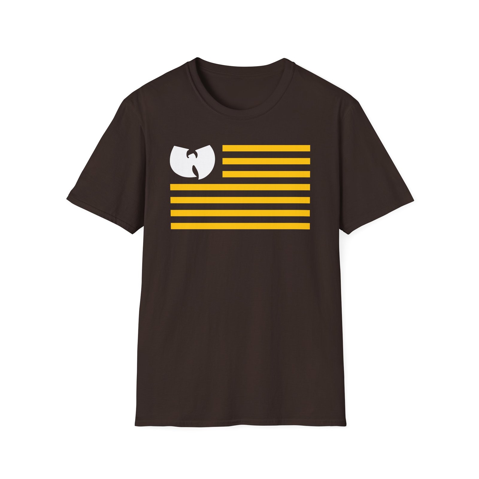 The Wu Tang Clan Flag unisex soft-style t-shirt puts a new spin on casual comfort. Made from very soft materials, this tee is 100% cotton for solid colors. Heather colors and sports grey include polyester. The shoulders have twill tape for improved durability. There are no side seams. The collar is made with ribbed knitting to prevent curling damage.