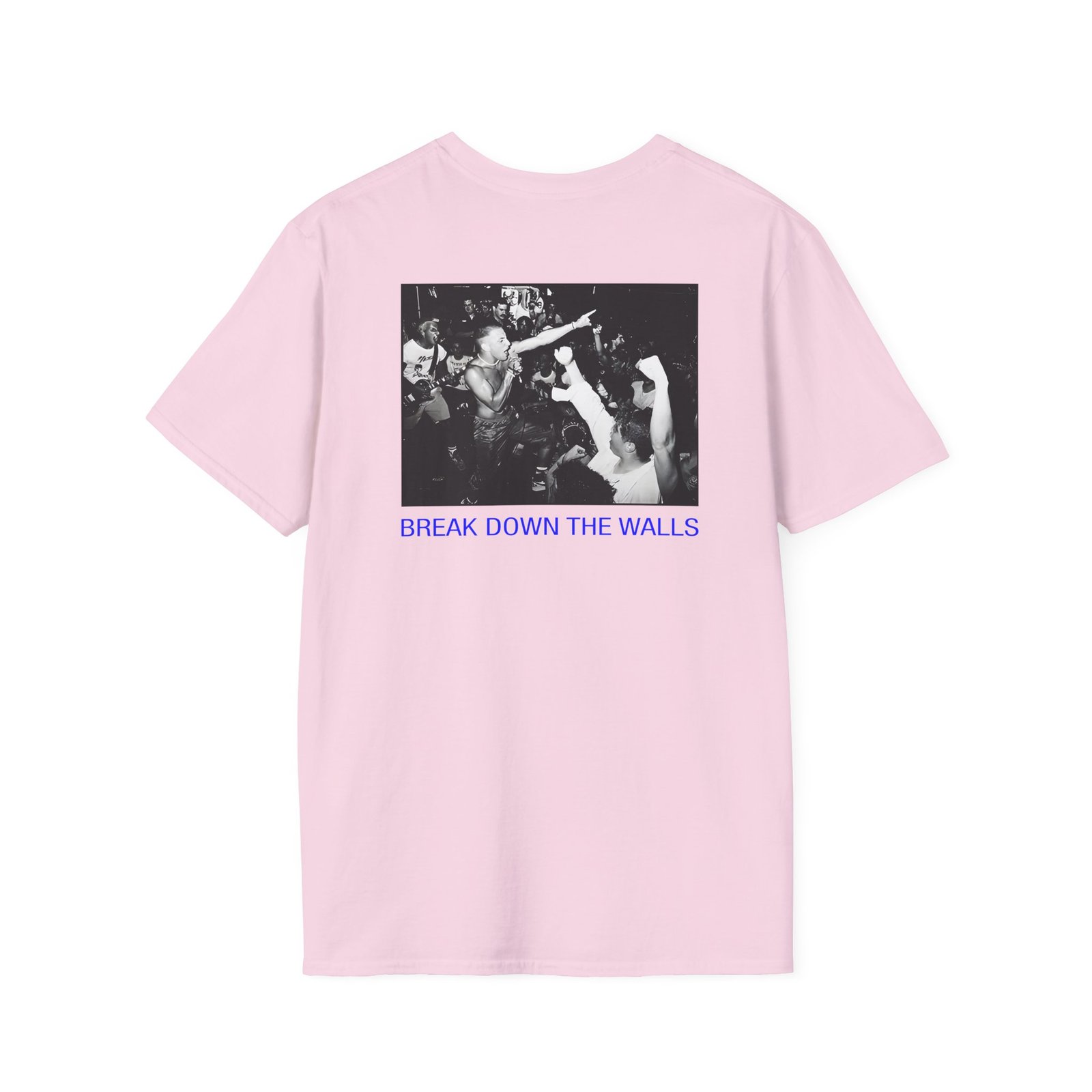 The Youth of Today Break Down The Walls Unisex Softstyle T-Shirt puts a new spin on casual comfort. Made from very soft materials, this tee is 100% cotton for solid colors. Heather colors and sports grey include polyester. The shoulders have twill tape for improved durability. There are no side seams. The collar is made with ribbed knitting to prevent curling damage.